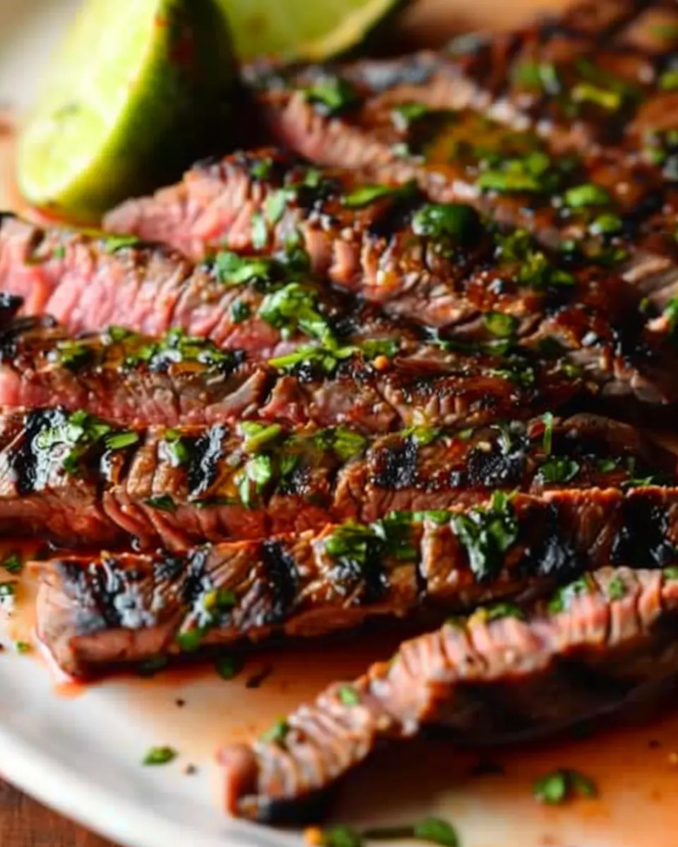 With everything ready, it’s time to cook your 20-Minute Chili Lime Flank Steak. Place the marinated steak on the grill or skillet. Sear each side for about 4 to 5 minutes, depending on your desired doneness. For medium-rare, you’re looking for an internal temperature of around 130°F (54°C).