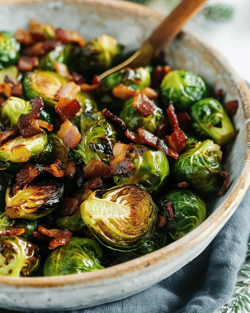 The magic happens in just 20 minutes on the stovetop! Once everything is prepped, you’ll sauté your Turkey bacon until crispy, toss in the Brussels sprouts, and let them caramelize alongside a drizzle of maple syrup. The beautiful sizzle and sweet aroma will have everyone eagerly waiting for dinner.