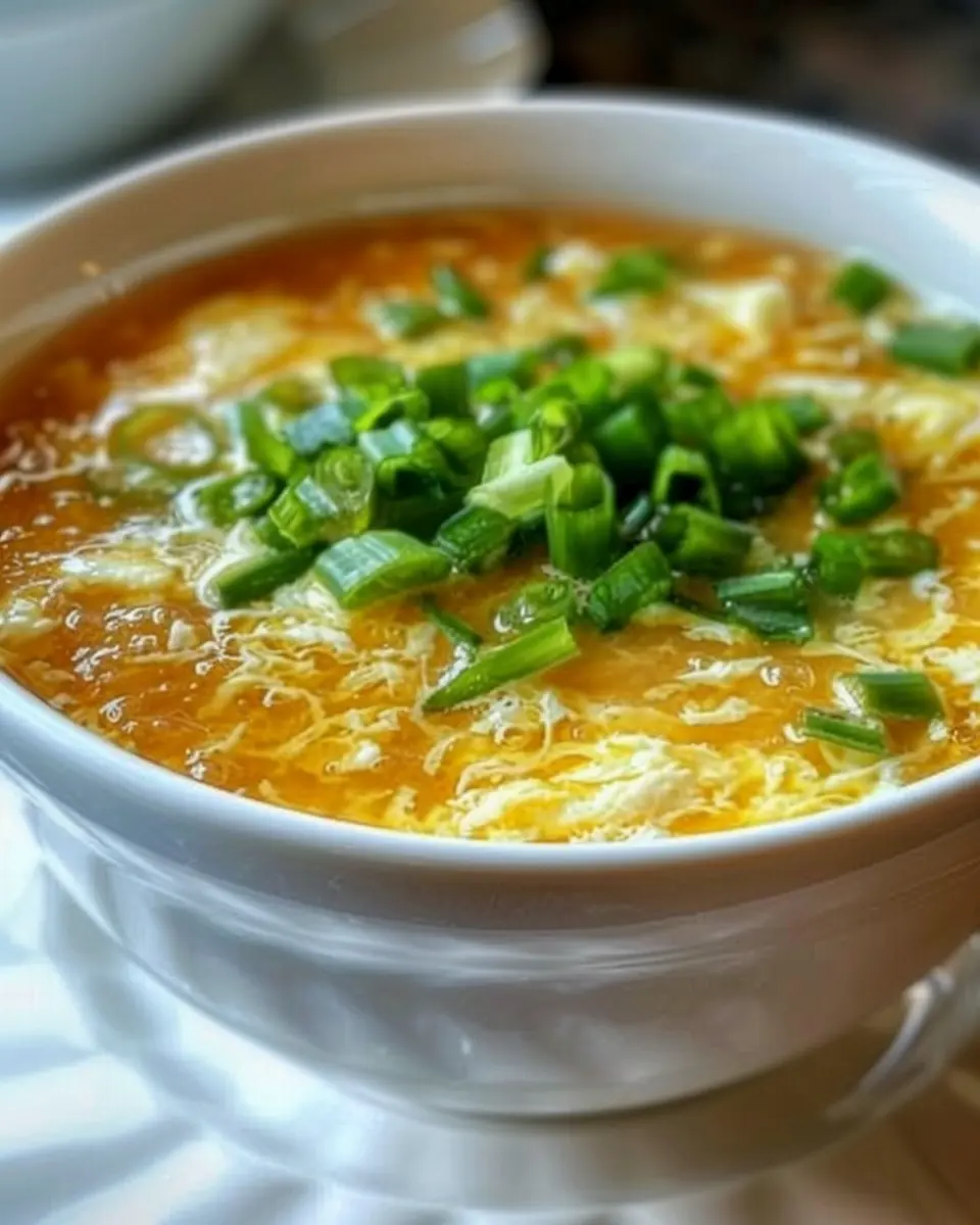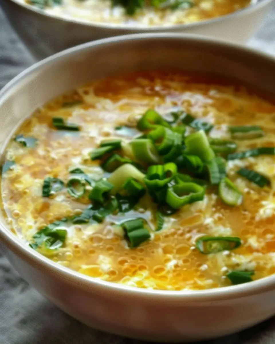 A warm and comforting bowl of authentic Chinese egg drop soup that brings a taste of home in every spoonful.