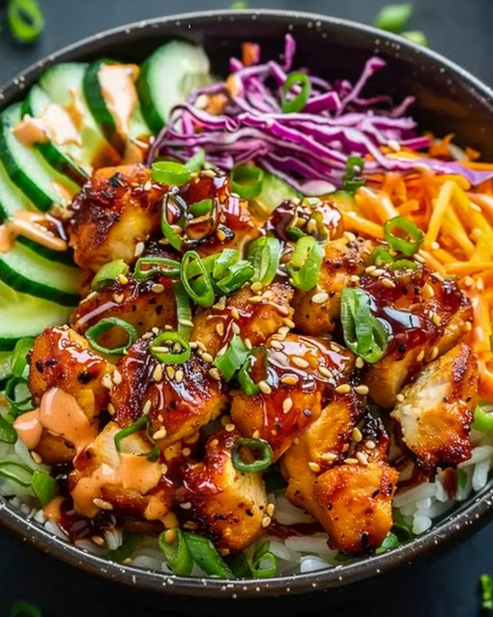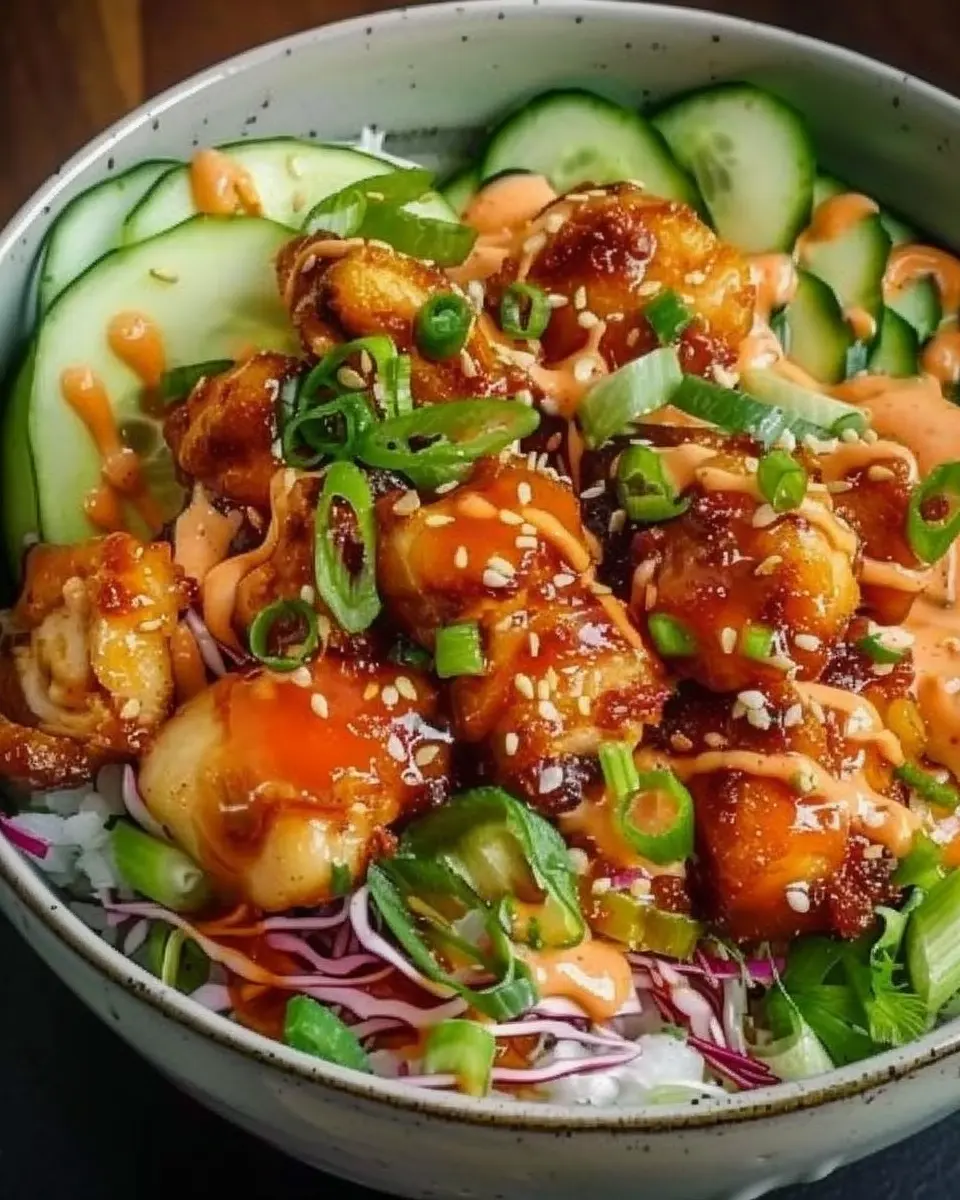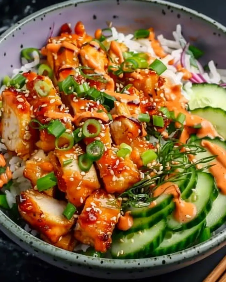 Keywords: Bang Bang Chicken Bowl, Turkey Bacon, Easy Recipe