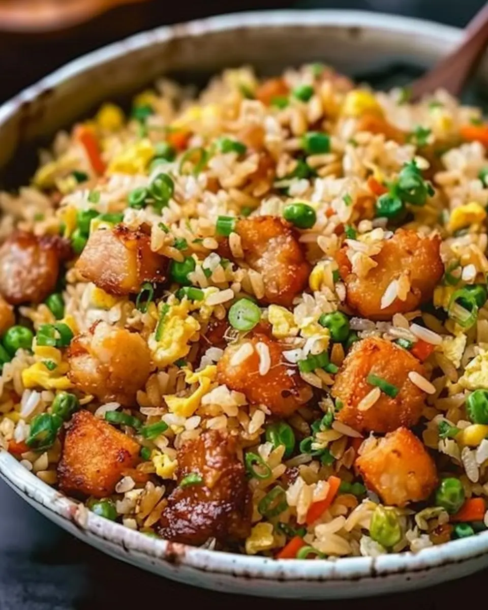 PrintBang Bang Fried Rice: Easy Turkey Bacon and Chicken Ham Delight