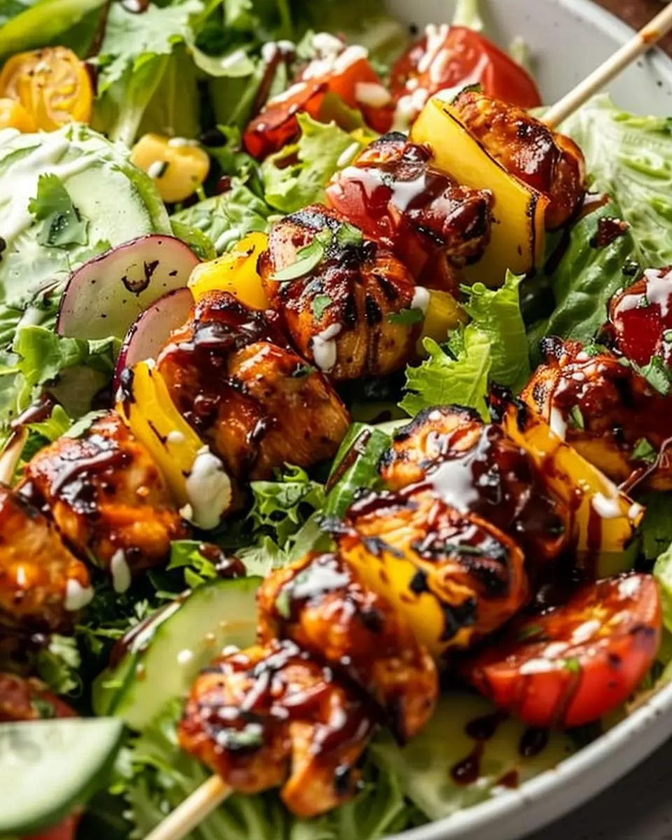 Enjoy a delicious and refreshing BBQ Chicken Skewer Salad that brings together juicy grilled chicken, crisp vegetables, and a tangy dressing for the perfect summer meal.