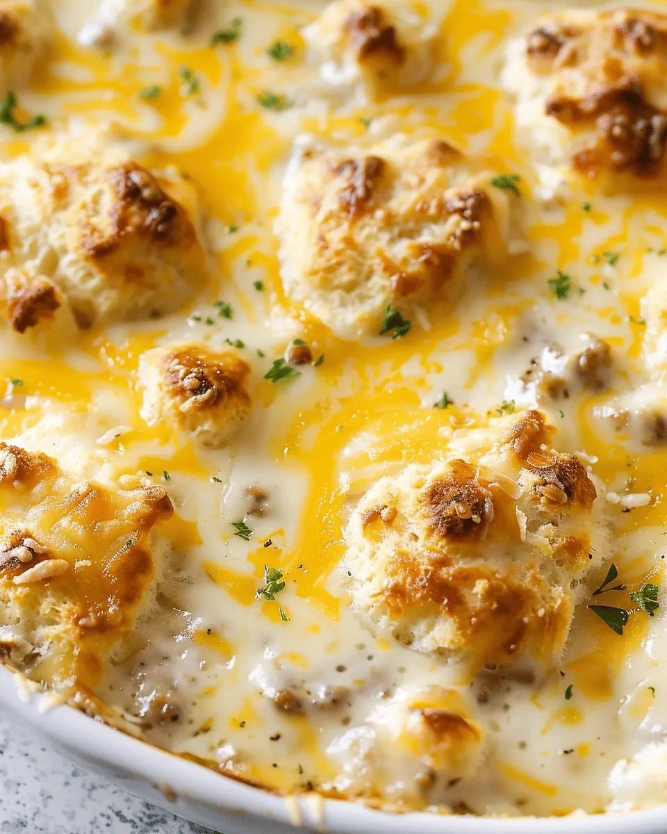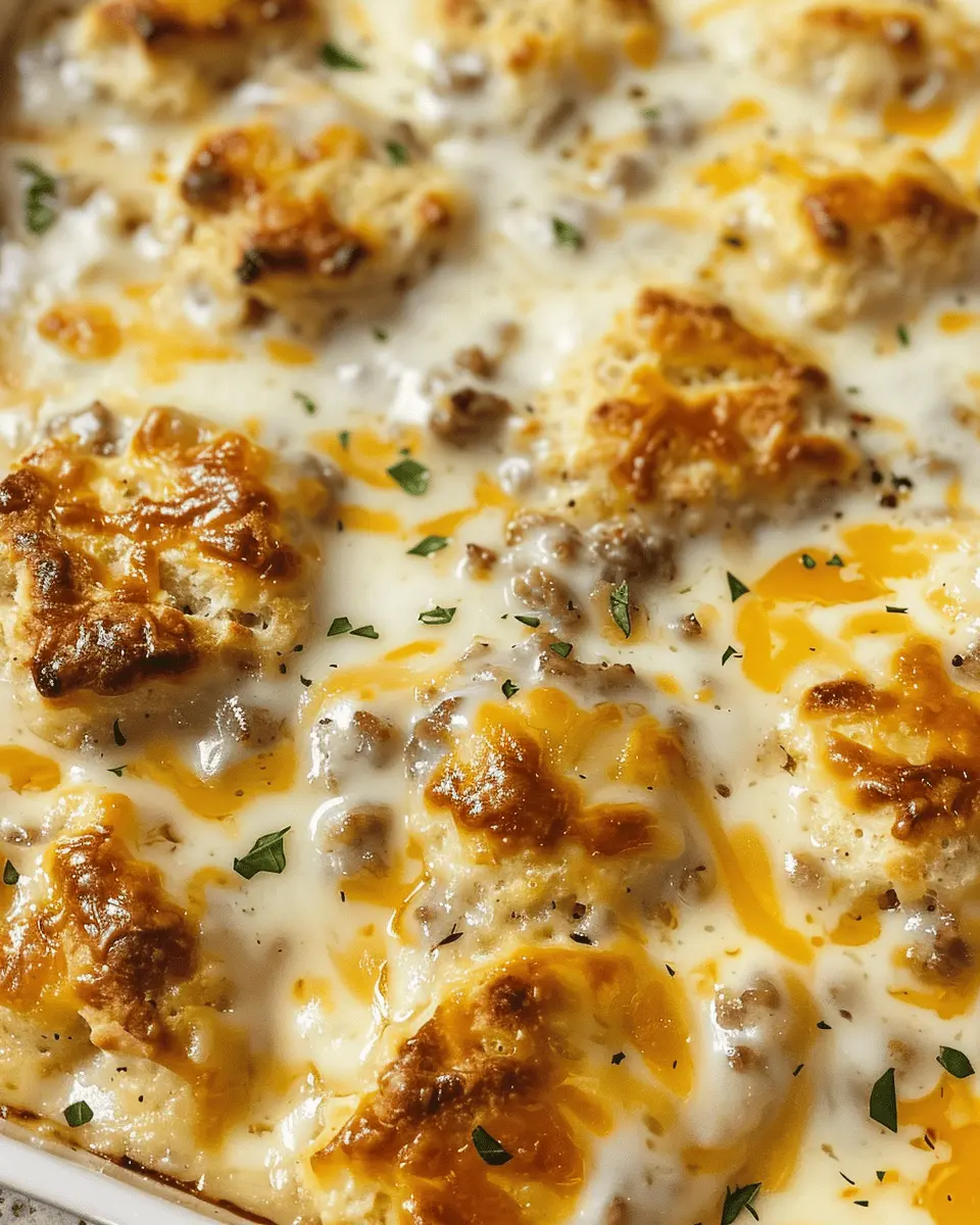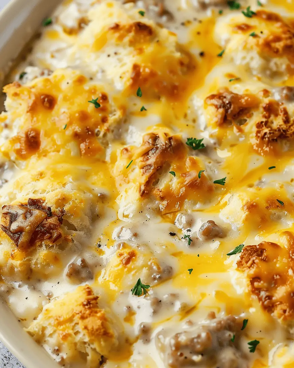 Layer Wisely: Proper layering ensures every bite bursts with flavor. Start with a solid base of biscuits, followed by your savory meat mixture, and finish with a rich, creamy gravy.