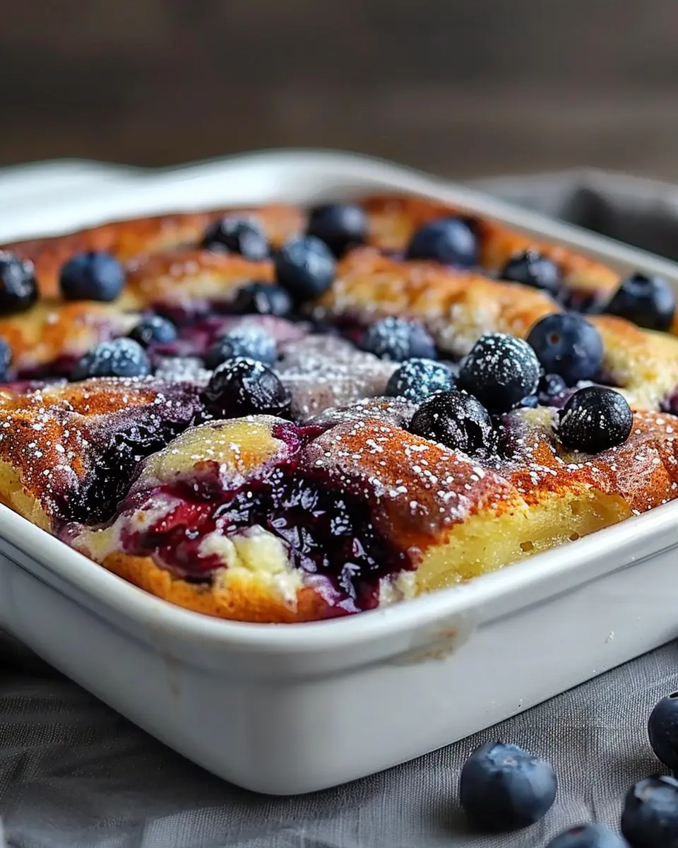 Transform your serving approach by cutting the casserole into squares and stacking them on plates, garnished with additional blueberries and powdered sugar. You might even consider a family-style presentation—place the casserole in the center of the table and let everyone help themselves. It’s perfect for sharing and makes the meal feel special.