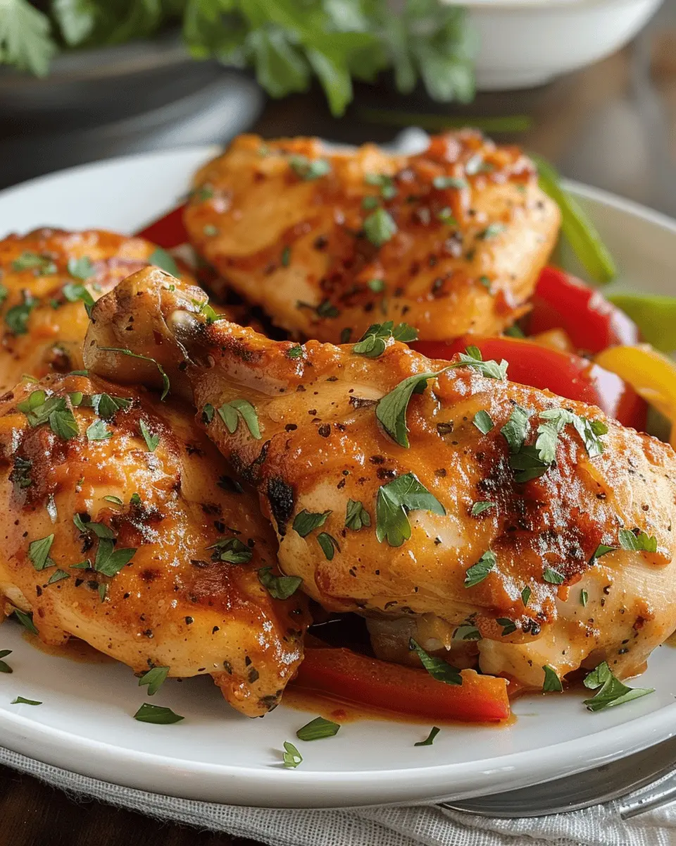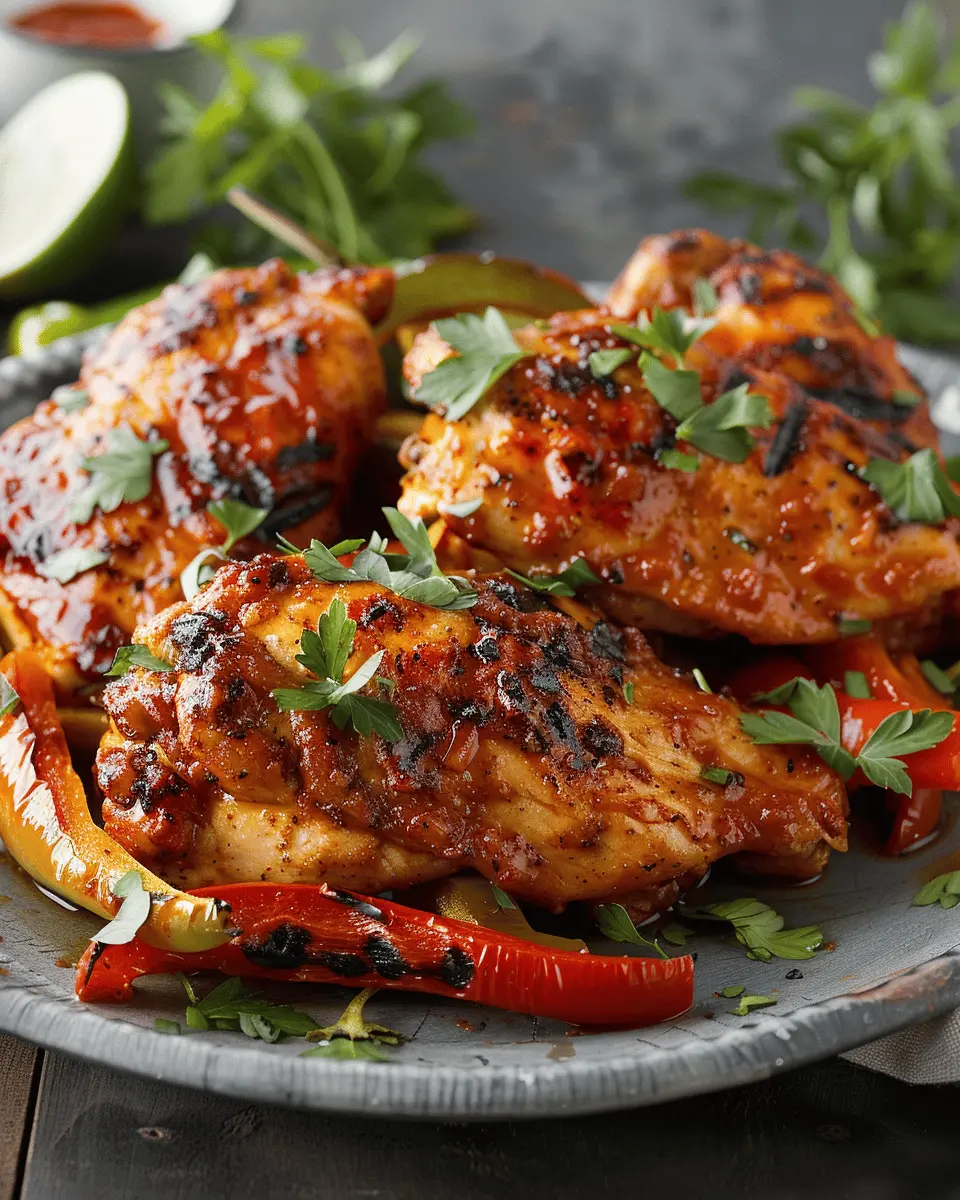 - Layered plates: Stack the chicken on top of a bed of rice and top with sautéed bell peppers for a colorful, tiered look.