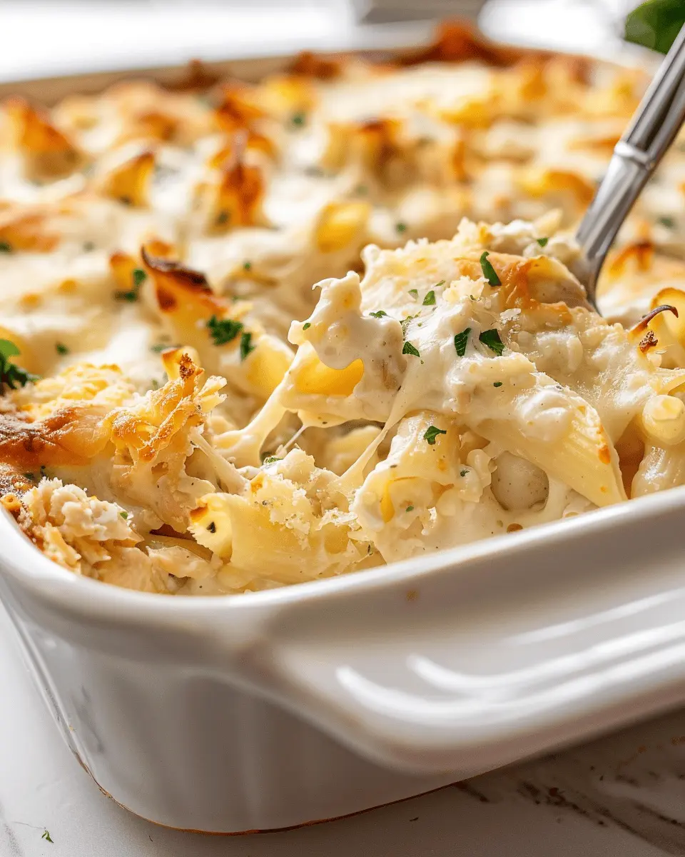 In conclusion, Chicken Alfredo Bake is not just a meal; it’s a comforting experience perfect for any occasion. With its creamy sauce, tender chicken, and savory flavors, it’s a go-to dish that appeals to everyone at the table.
