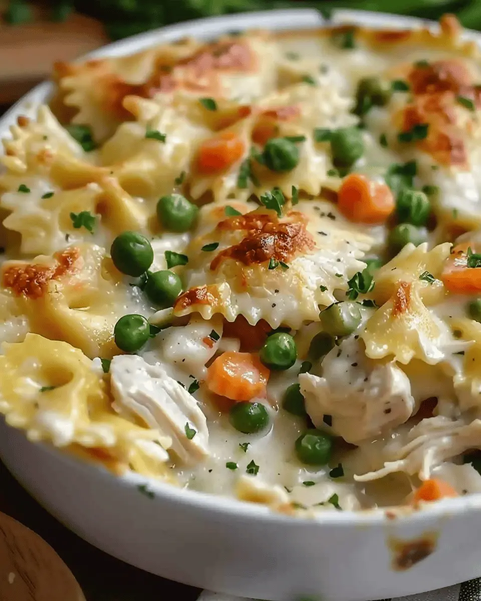 Got a gathering on the horizon? Serve this chicken pot pie pasta for a cozy family dinner or a casual get-together with friends. It’s comfort food at its finest, making it a hit at potlucks or holiday feasts.