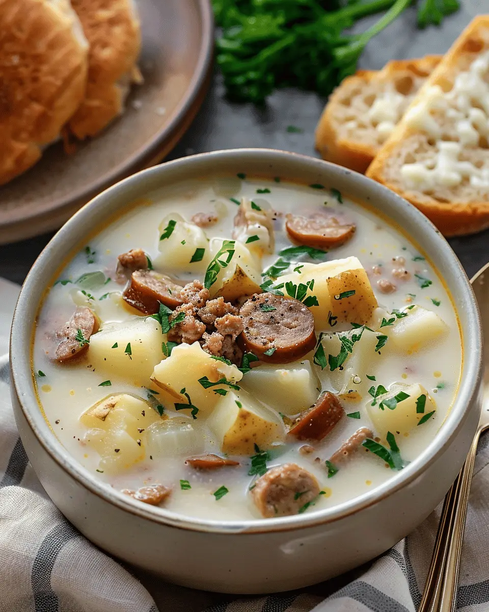 PrintCozy Crockpot Potato Soup with Sausage: Easy Comfort Food Delight