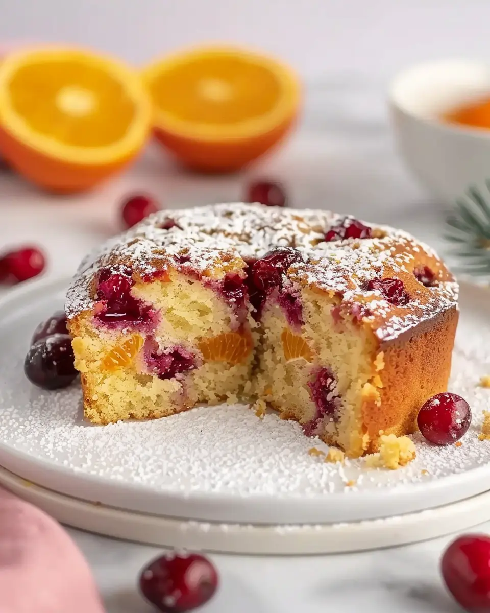 Start your morning with a delightful Cranberry Orange Breakfast Cake that combines the tangy flavor of cranberries with the zesty aroma of orange.