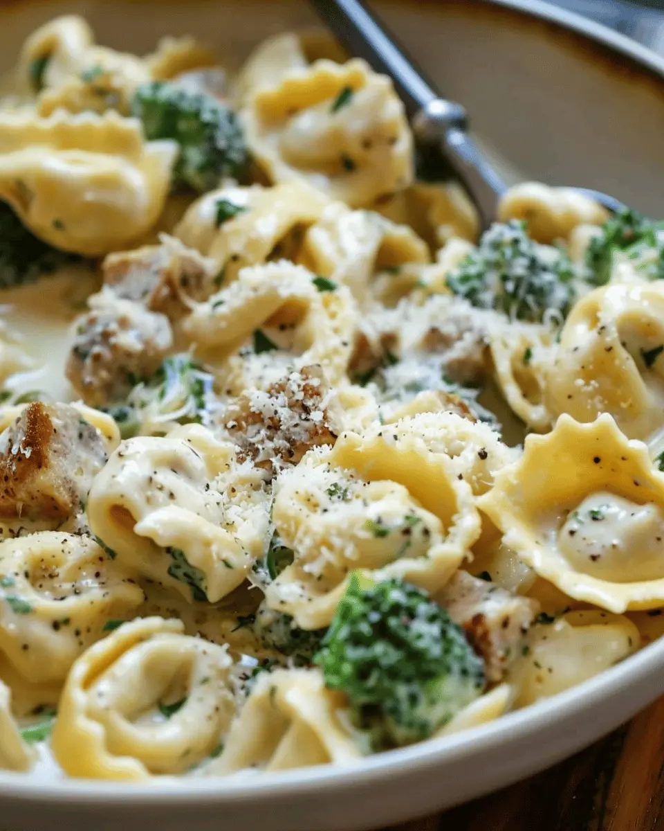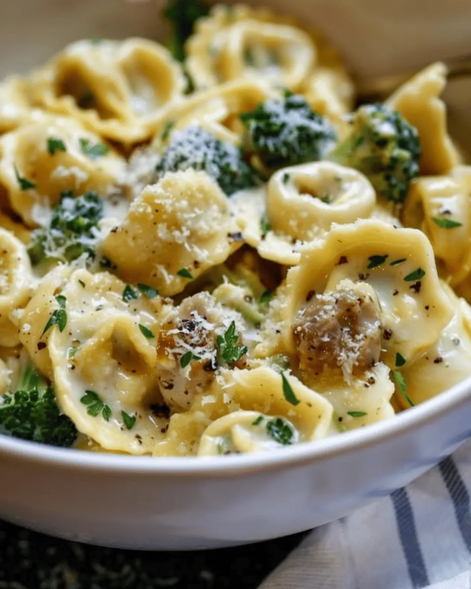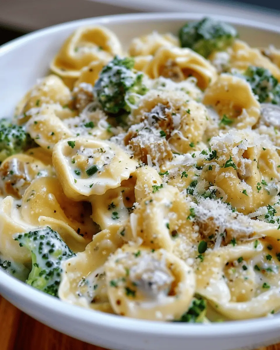Once the tortellini and broccoli are cooked, drain them and then add them to the skillet with the creamy sauce. Mix everything gently, ensuring that every piece is coated with that velvety sauce. Serve hot, garnishing with fresh parsley if you like. Can you imagine the looks on your friends’ faces as they take that first bite? Probably something like pure bliss!
