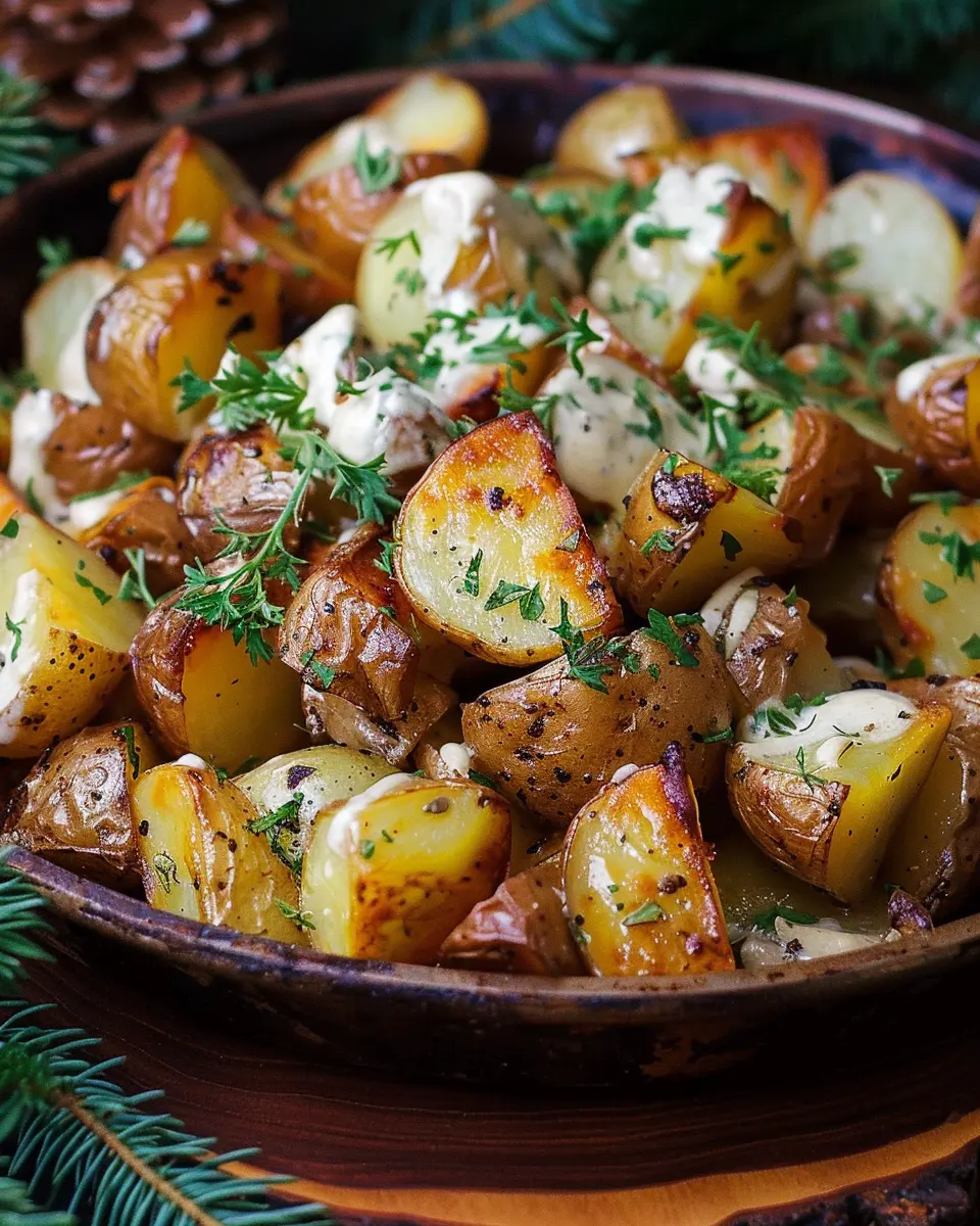 Herb-infused creamy mustard roasted potatoes