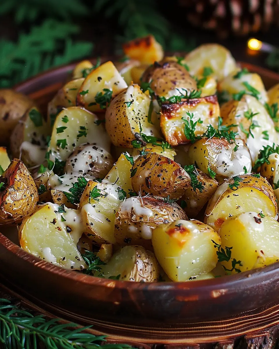 A delightful side dish featuring roasted potatoes tossed in a creamy mustard sauce, perfect for any meal.