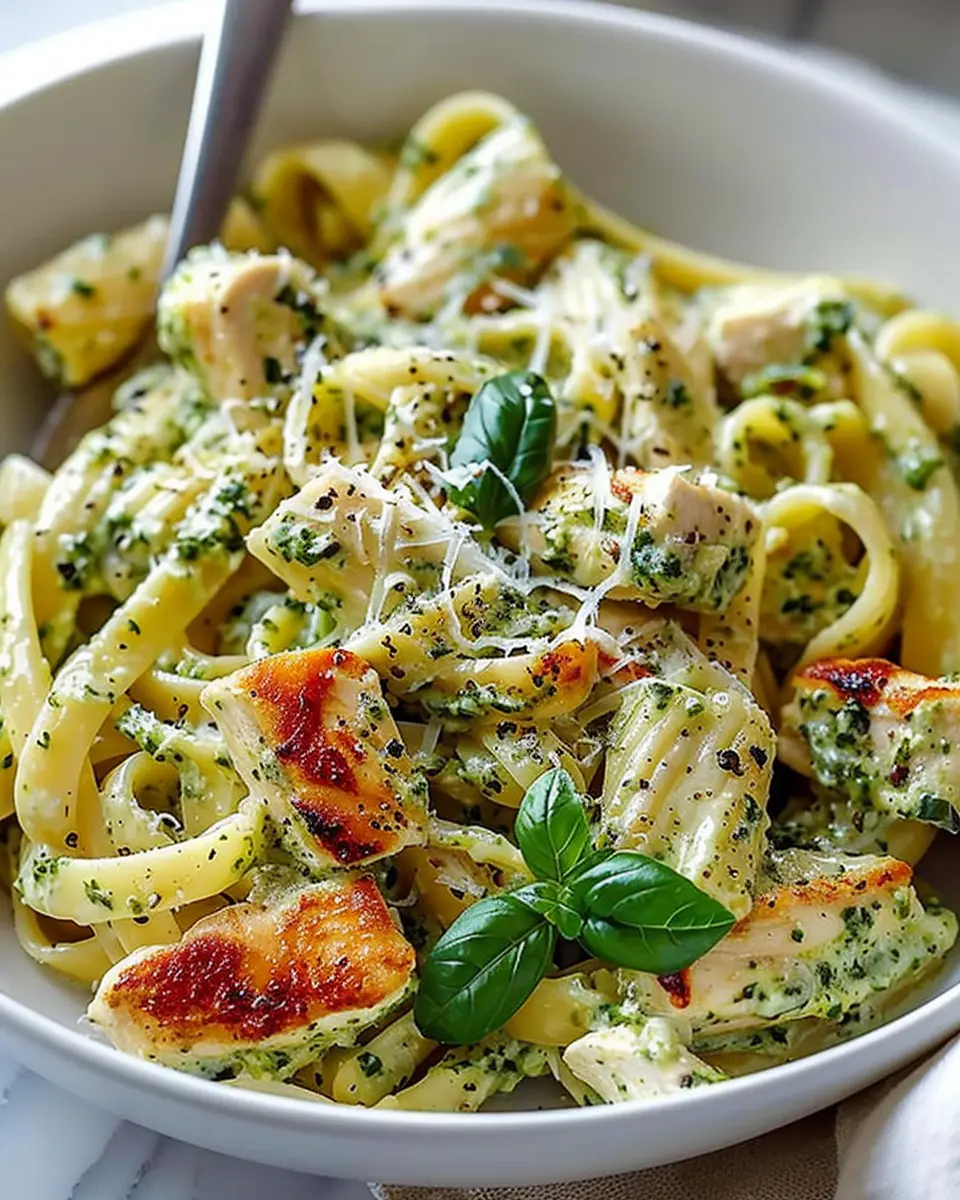 Keywords: Creamy Pesto Chicken Pasta, easy pasta recipe, weeknight dinner