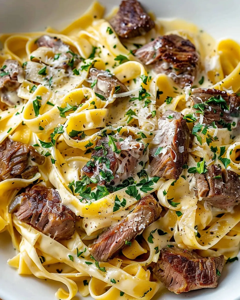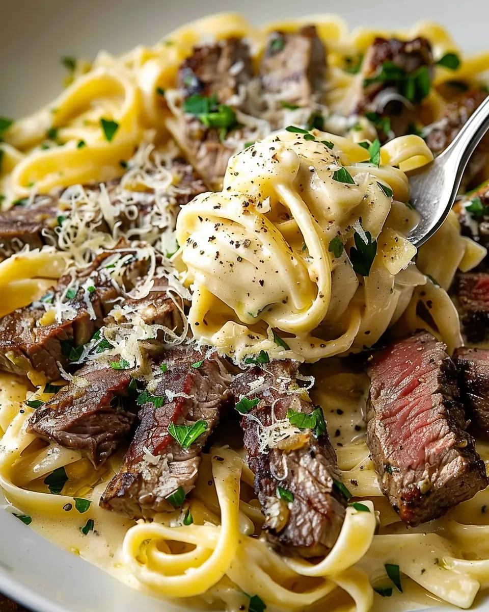 Satisfying and Comforting: Let’s face it, after a long day, comforting food often hits the spot. The creamy sauce envelopes the steak and pasta in a way that just feels indulgent and satisfying.