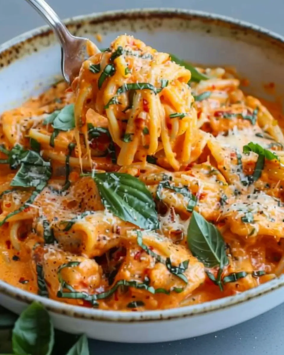 The cooking phase is brief, taking around 20 minutes. While your pasta is boiling, you’ll create a creamy tomato sauce that is truly irresistible.