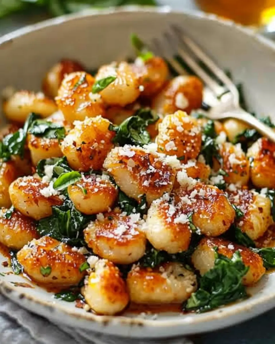 - Preparation: Sauté your greens in olive oil along with garlic until just wilted. Combine them with the crispy gnocchi and finish with a sprinkle of Parmesan for richness.