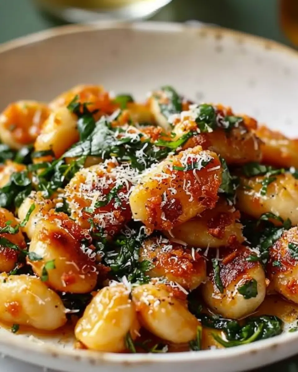 Now, let’s take your crispy gnocchi up a notch by incorporating crumbled feta. The creamy tang of feta complements the crispy texture perfectly, delivering a burst of flavor with every bite. Just sprinkle it over the gnocchi and spinach mixture, allowing it to melt slightly from the residual heat.