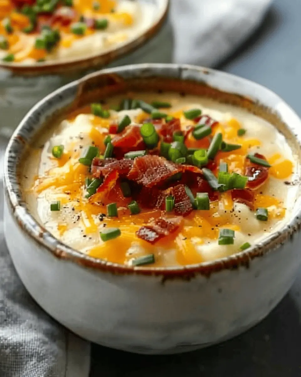• Cheddar and Chives: Garnish each bowl with shredded sharp cheddar cheese and a sprinkle of fresh chives. This not only enhances the flavor but also adds a vibrant pop of color.