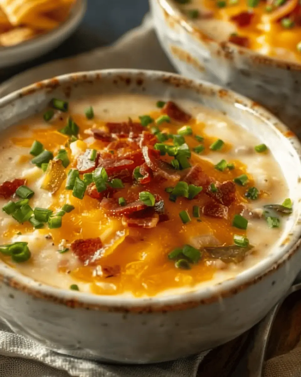 Now comes the fun part—finishing touches! Ladle your Crockpot Loaded Baked Potato Soup into bowls and top it off with your favorite ingredients: