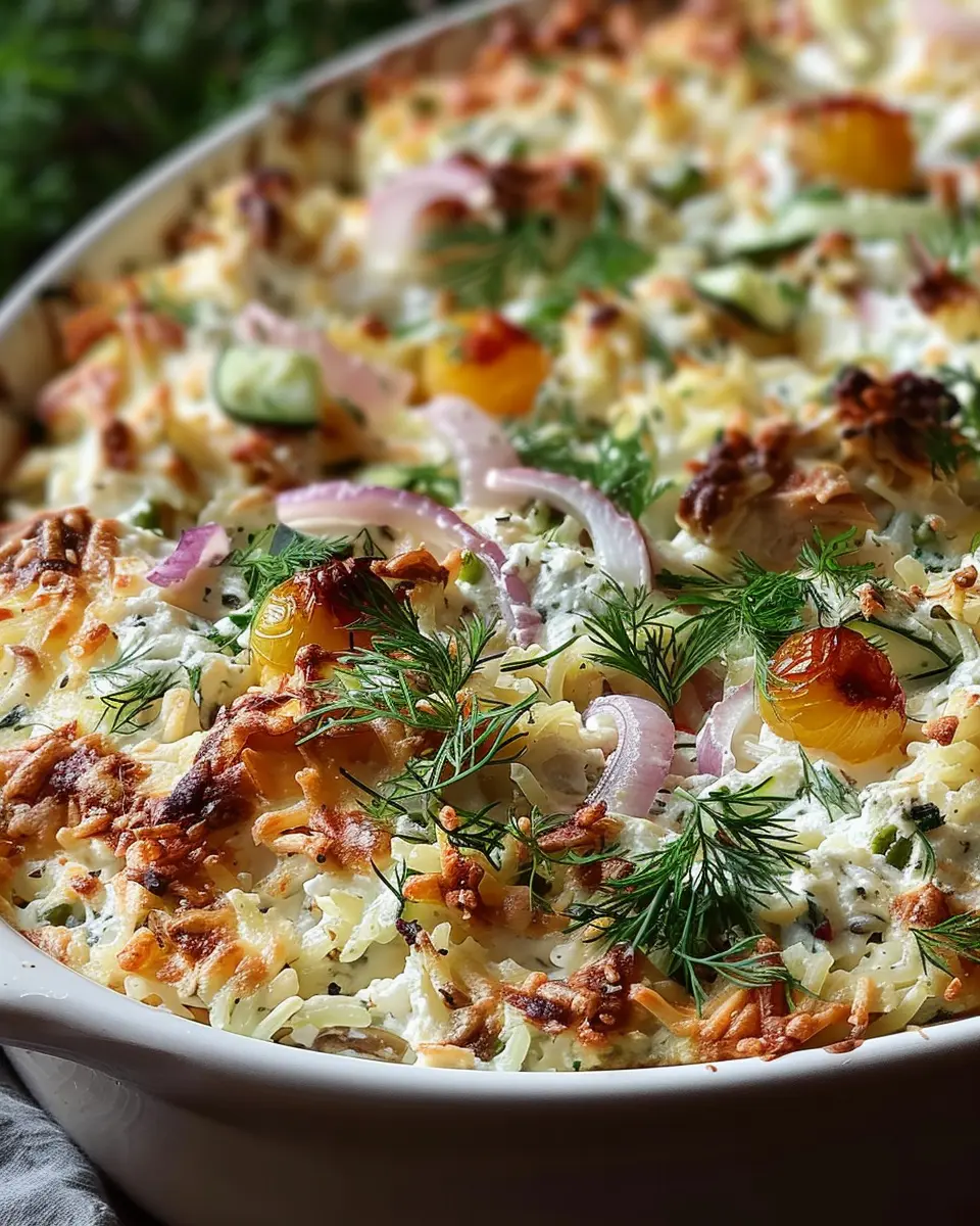 If you’re looking to enjoy a meat-free version, simply swap the chicken for hearty ingredients like chickpeas or lentils. These protein-packed alternatives provide a satisfying texture and flavor. You can incorporate an array of colorful vegetables such as zucchini, bell peppers, and spinach. They not only enhance the nutritional profile but also make the dish visually appealing. Don’t forget to toss in some feta or a dairy-free cheese alternative to keep that classic tzatziki taste echoing through the casserole!