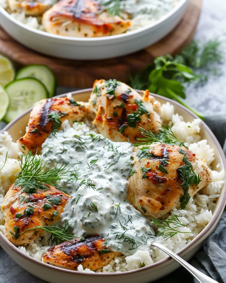 A simple and delicious family meal that combines the flavors of chicken with tzatziki sauce.