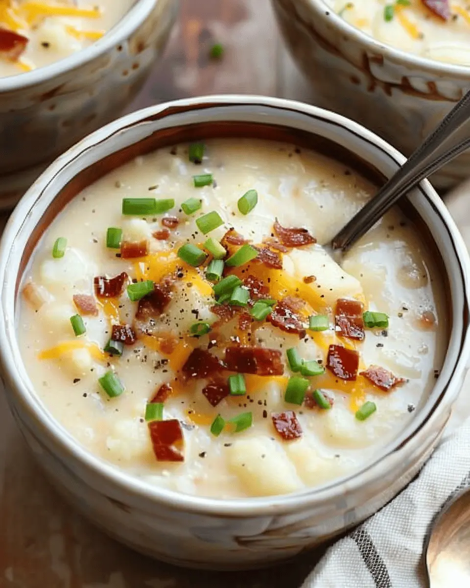 PrintEasy Baked Potato Soup: Indulgent Comfort with Turkey Bacon