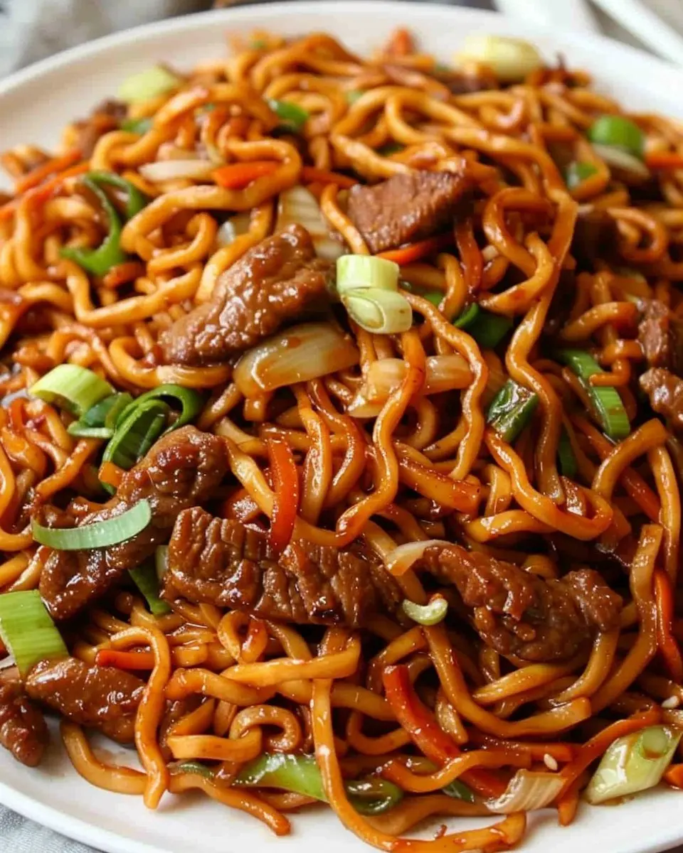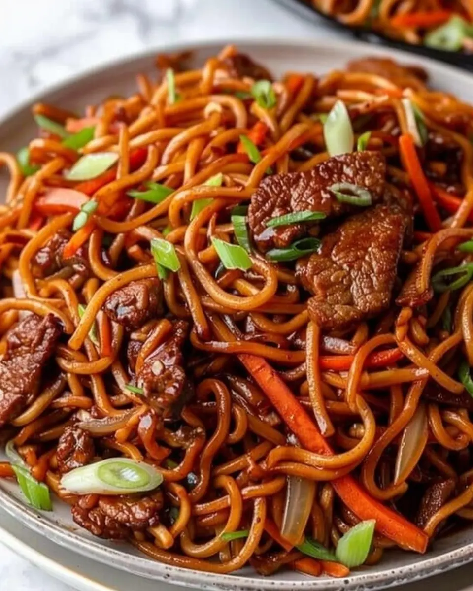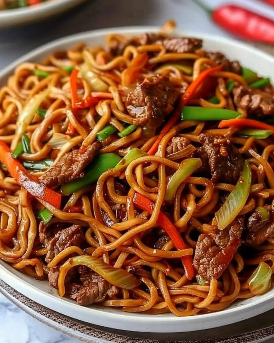 Your easy beef lo mein is now ready to serve! Plate up generous portions and garnish with sliced green onions or sesame seeds for that final touch. Enjoy your delightful creation with chopsticks or a fork—whatever makes you feel comfortable!