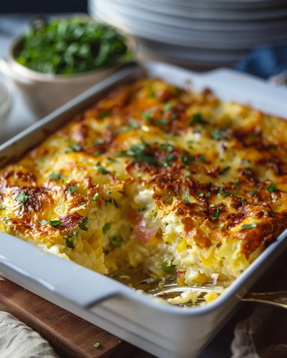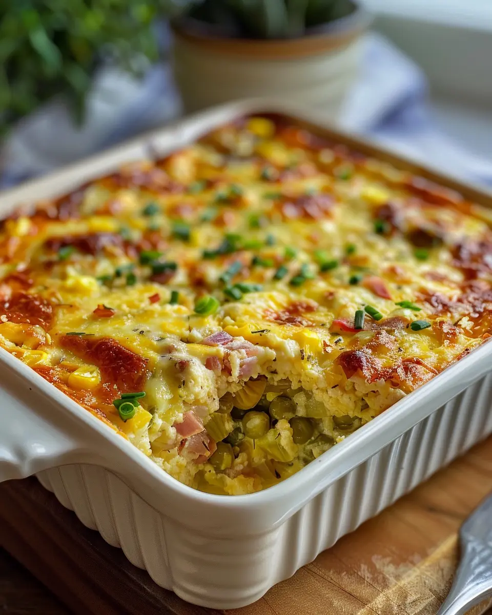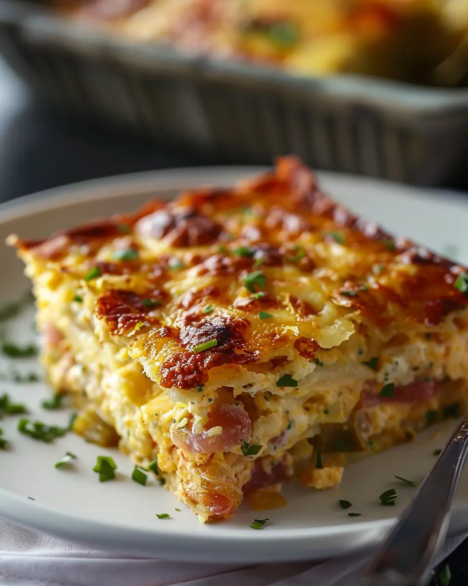 A hearty and flavorful casserole featuring turkey bacon and chicken ham, perfect for any meal.