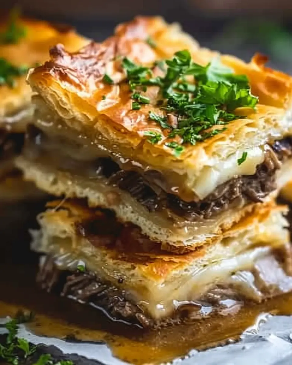 If you’re lucky enough to have leftovers of French Dip Squares, you’ve hit the jackpot! Leftovers can be stored in an airtight container in the fridge for up to three days. Reheat them in the oven or air fryer for a crispy texture. You can also turn them into a new dish; consider slicing them up and layering the pieces in a salad or enjoying them in a wrap. Don’t forget to make a rich, beefy dipping sauce using the leftovers for added flavor.