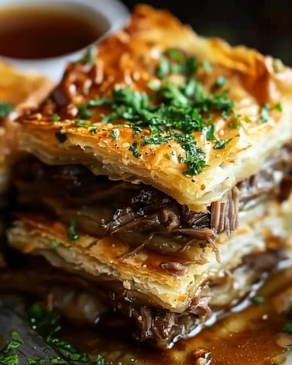 A delicious twist on a classic French dip sandwich, perfect for gatherings.