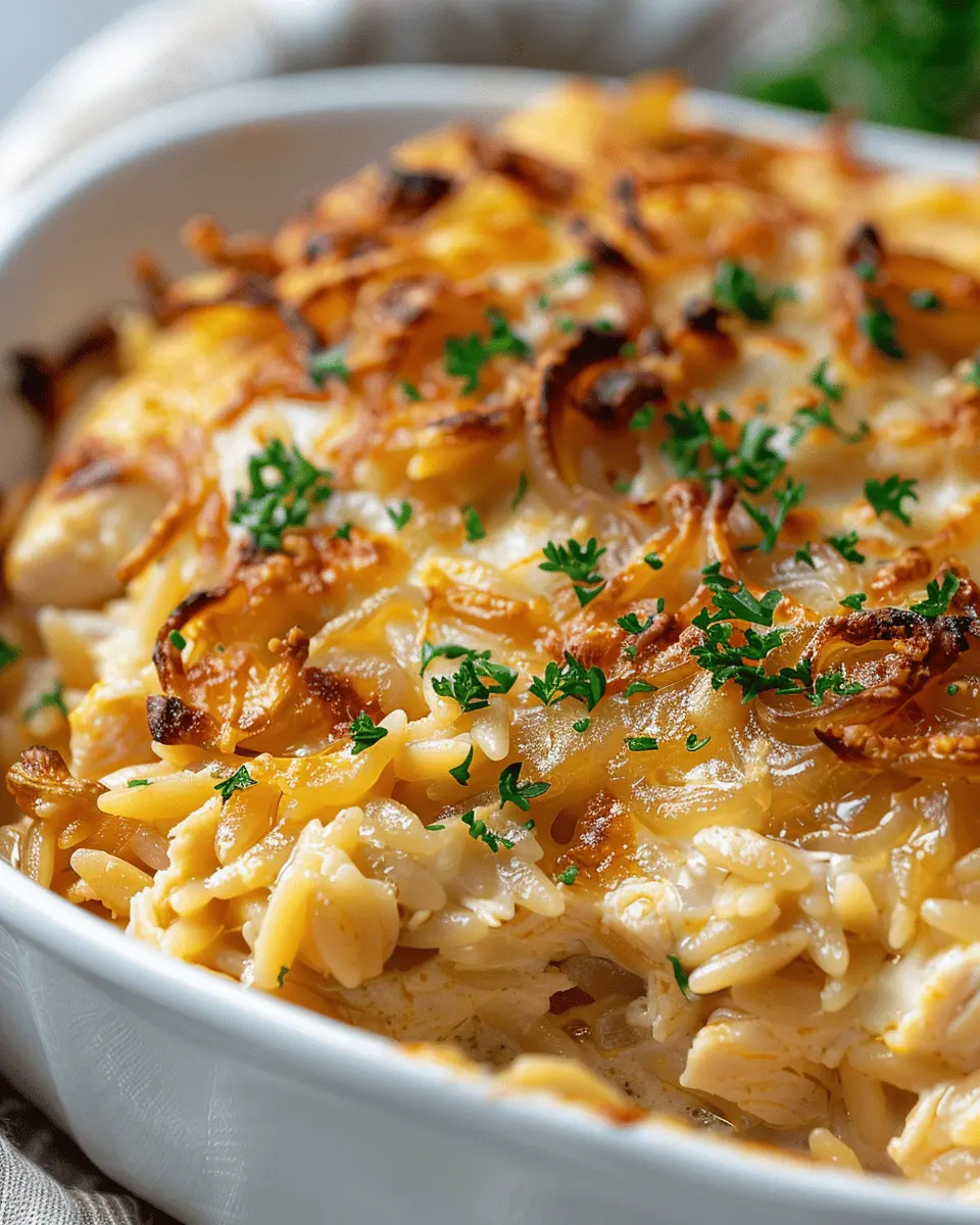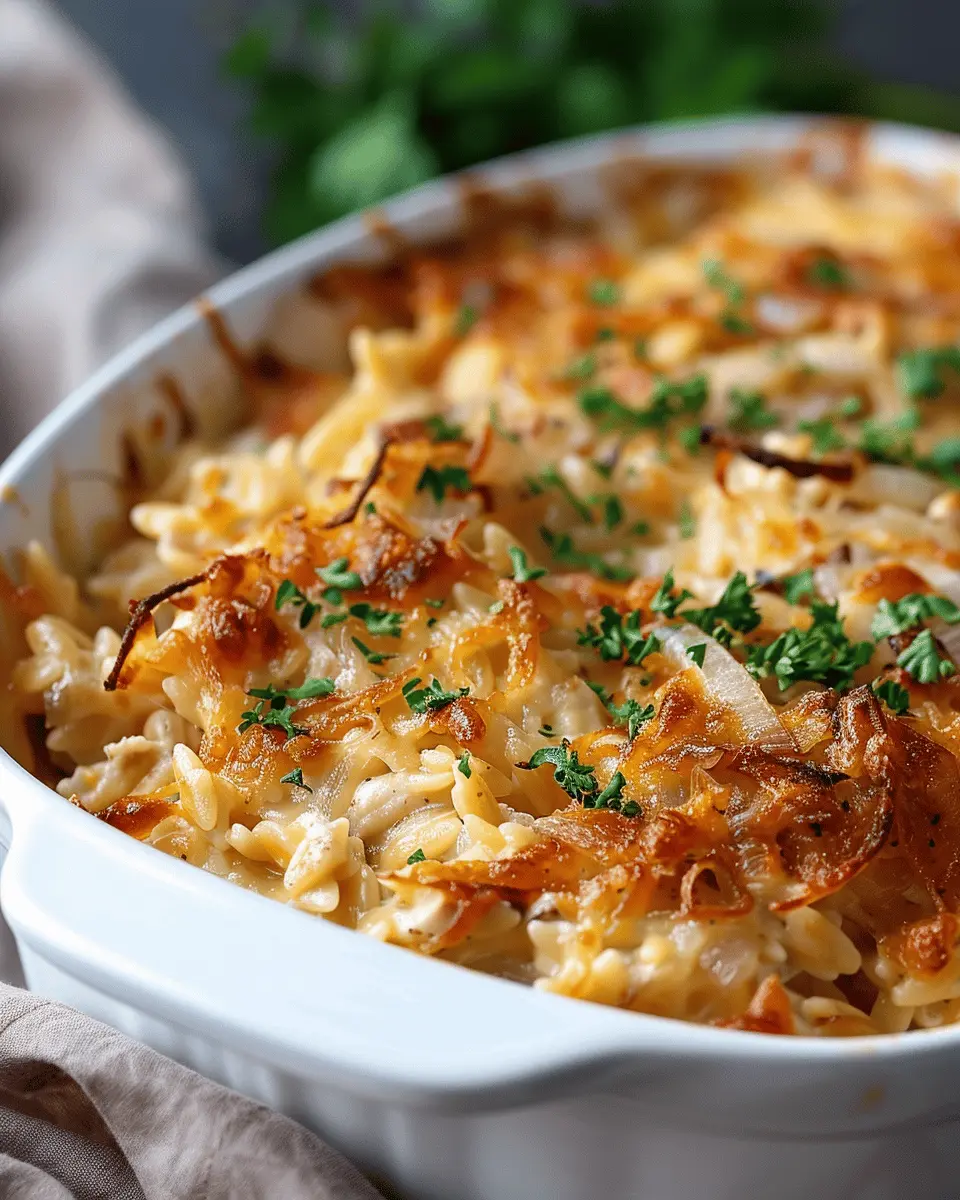 French Onion Chicken Orzo Casserole: Easy Comfort Food Delight
