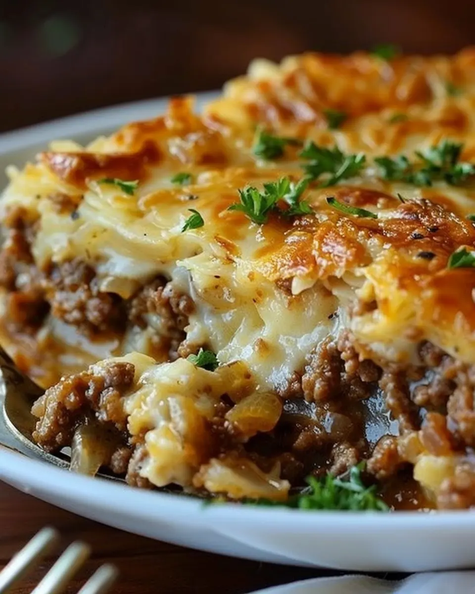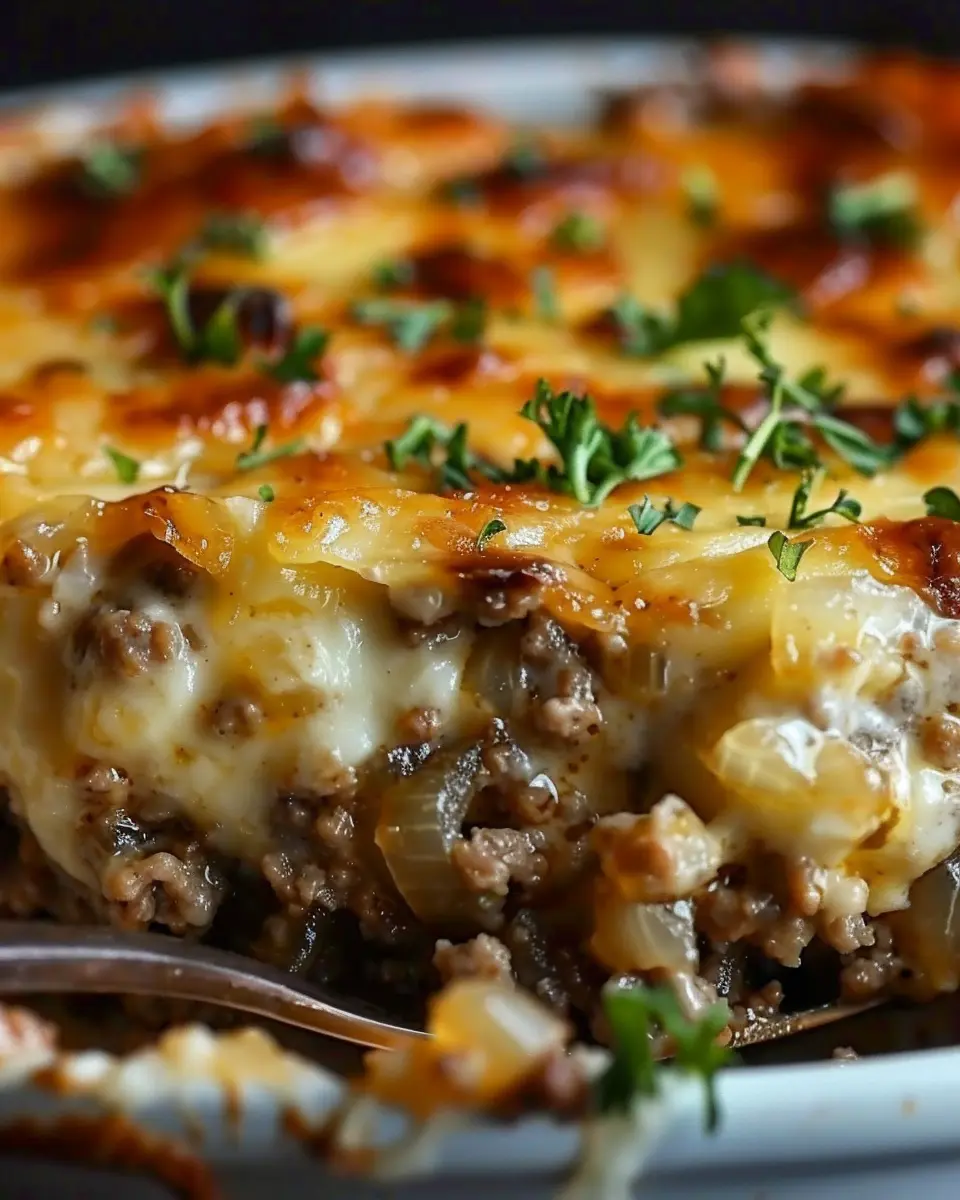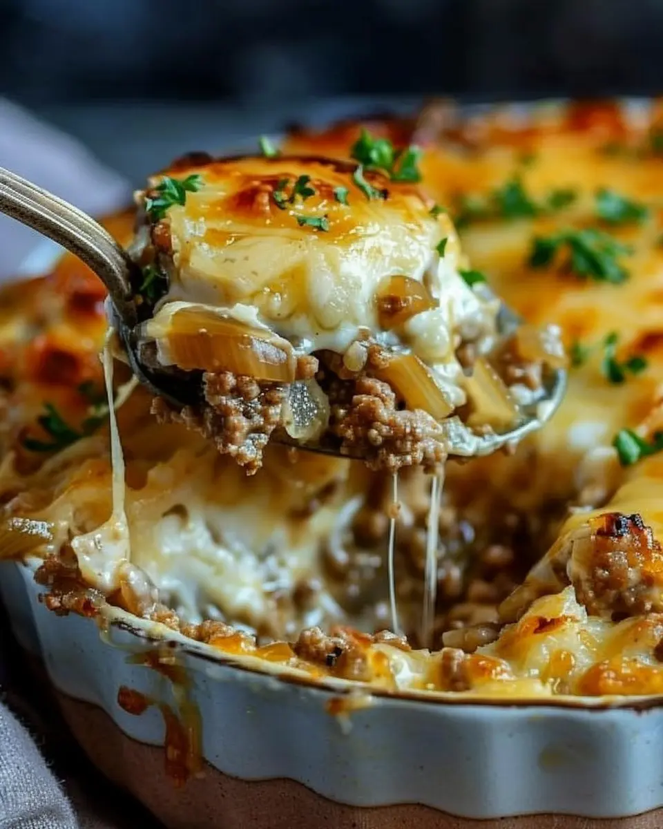 If you’re looking for a lighter option, consider substituting ground beef with lean ground turkey. Turkey not only cuts down on calories but also brings its own delicious flavor. The natural moisture from the turkey combined with the rich, savory onions and cheese will still deliver that comforting feel you love about a baked casserole. Plus, it’s a great choice for anyone trying to eat healthier without sacrificing taste.