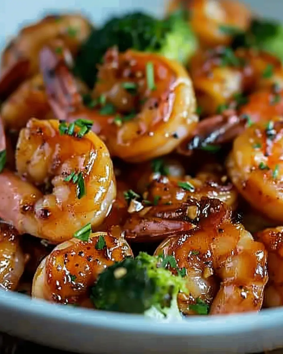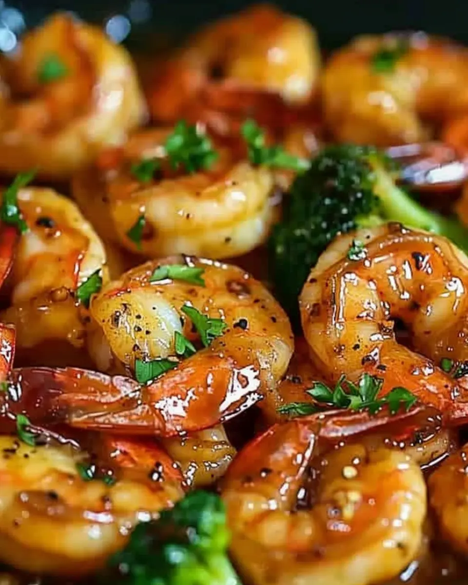 A savory dish featuring shrimp glazed in a sweet and tangy honey garlic sauce, perfect for a high-protein meal.