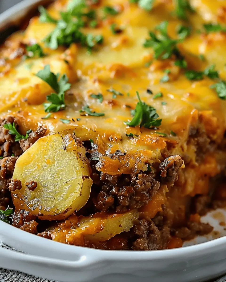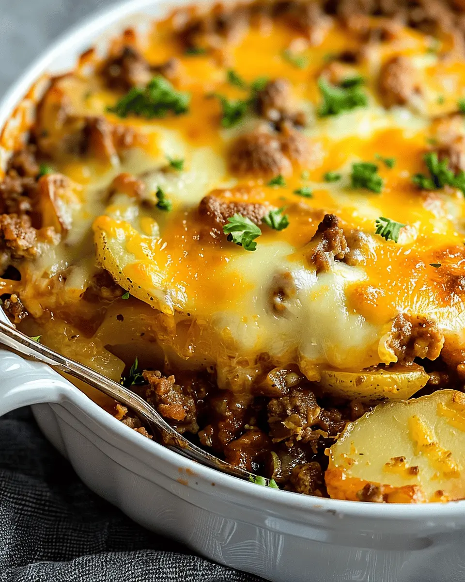 Who doesn’t love a cheesy casserole? To amp up the cheesy goodness in your Hobo Casserole with Ground Beef & Potatoes, consider using a blend of cheeses such as sharp cheddar, mozzarella, and Monterey Jack. Layer them between the beef and potatoes, and don’t be shy—more cheese means more flavor! For an aromatic twist, sprinkle some garlic powder or Italian herbs over the layers before baking. This simple addition elevates the dish to a comforting, indulgent meal.