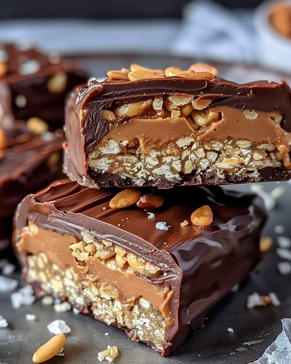 Keywords: Homemade Protein Snickers Bars, Healthy Snacks, Protein Bars, Easy Recipes