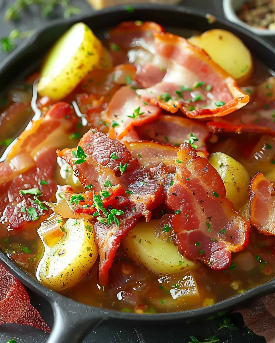 Absolutely! Flexibility is key in any recipe. If you can’t find Irish Bacon, you can swap it for Turkey Bacon. It still gives that meaty flavor while being a leaner option. You can also use Chicken Ham if you’re looking for something milder. In terms of vegetables, feel free to swap out cabbage for kale or spinach, which brings a fresh twist. If you want a creamier texture, adding a splash of vegetable broth or even milk can enhance the flavor, too.