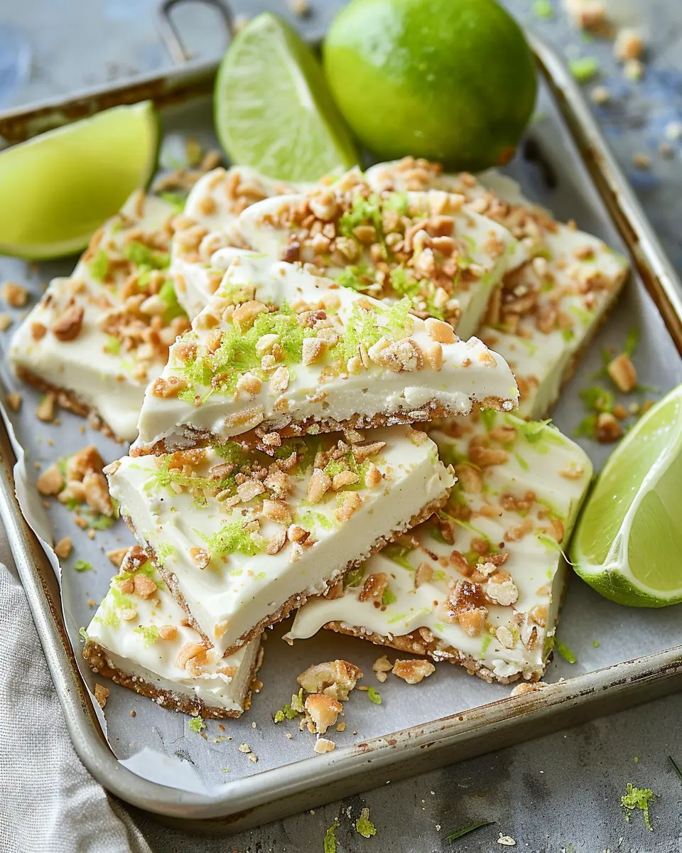 A delicious and refreshing treat that combines yogurt and key lime flavors into a delightful bark.