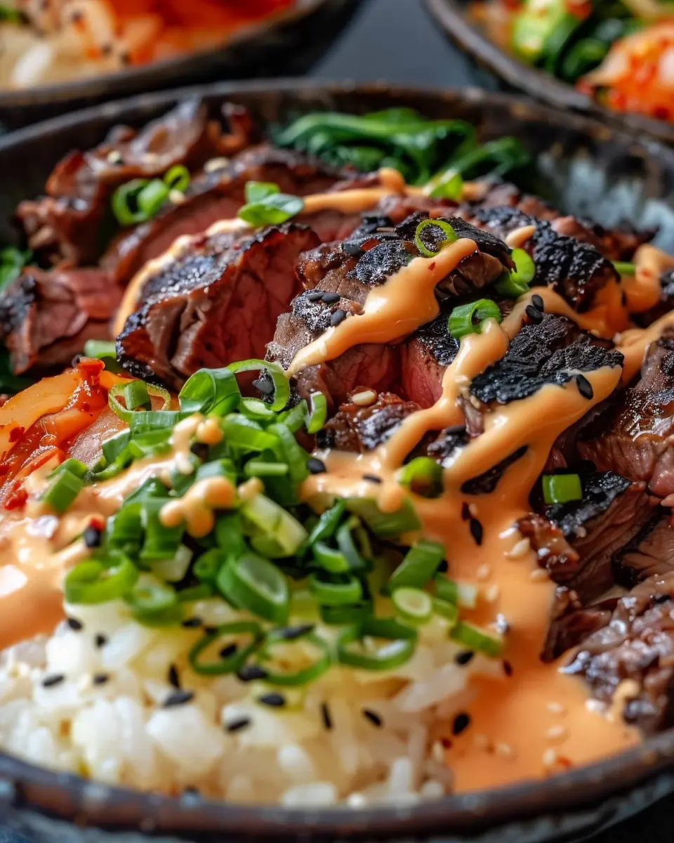 PrintKorean BBQ Steak Rice Bowls: A Juicy Twist on Homemade Comfort