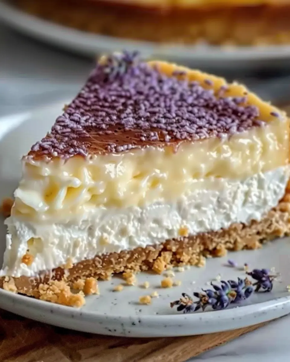 Experience the delightful combination of lemon and lavender in this rich and creamy cheesecake, perfect for special occasions.
