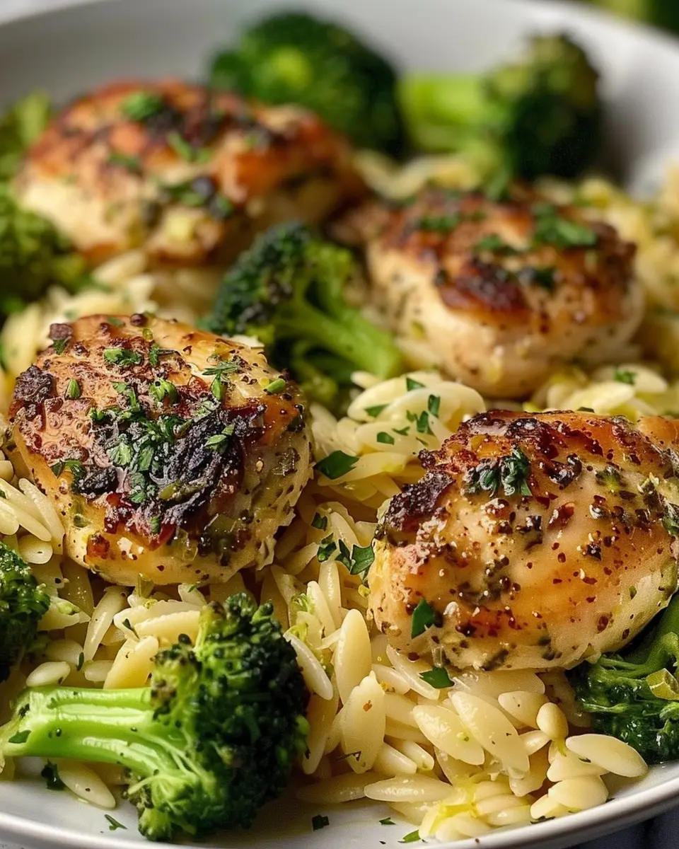 Keywords: Lemon Pepper Chicken, Broccoli, Orzo, Easy Dinner