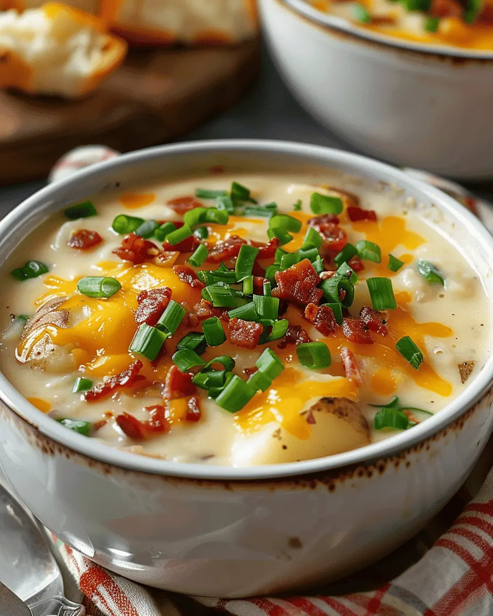 PrintLoaded Baked Potato Soup: An Indulgent Twist with Turkey Bacon