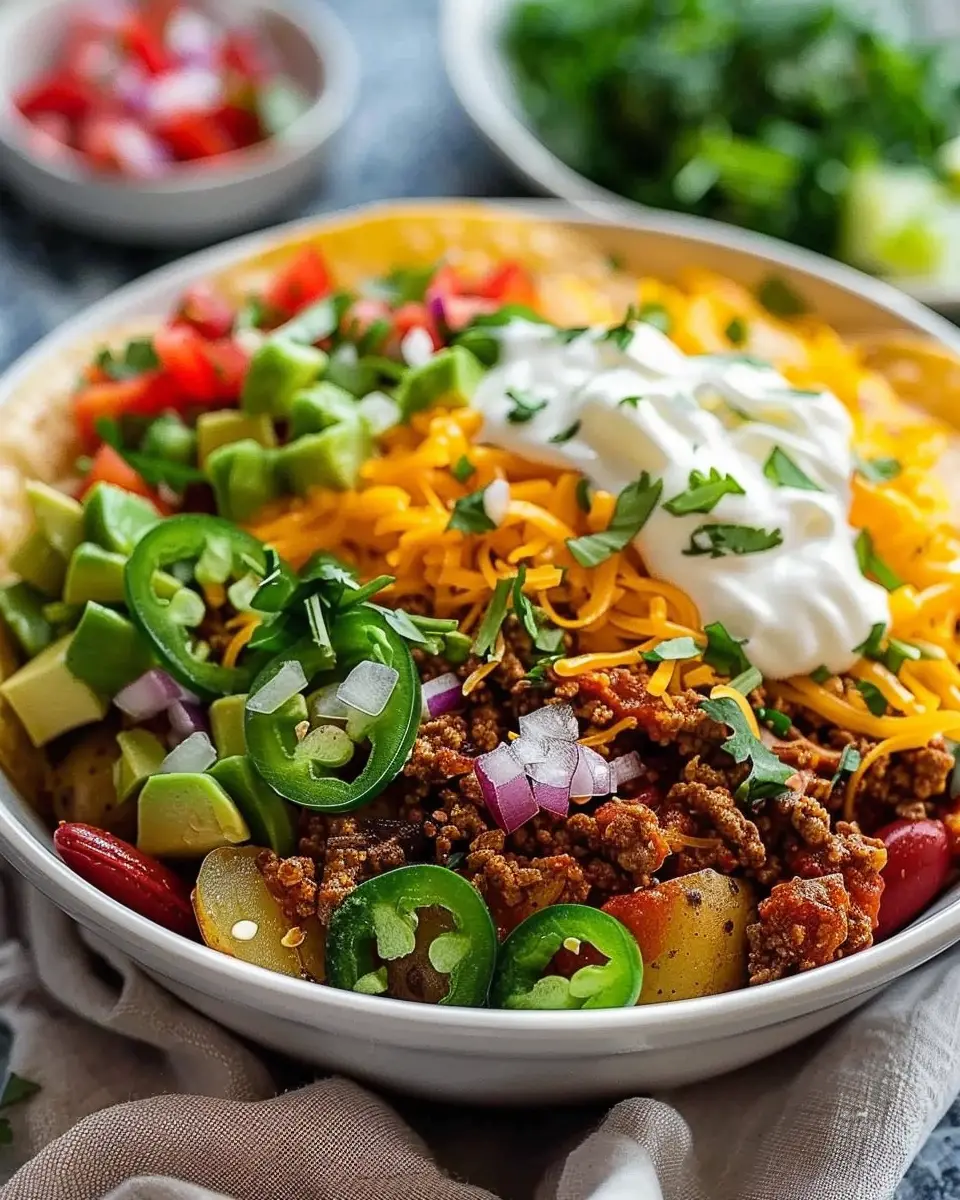Spicy Loaded Potato Taco Bowl with Jalapeños