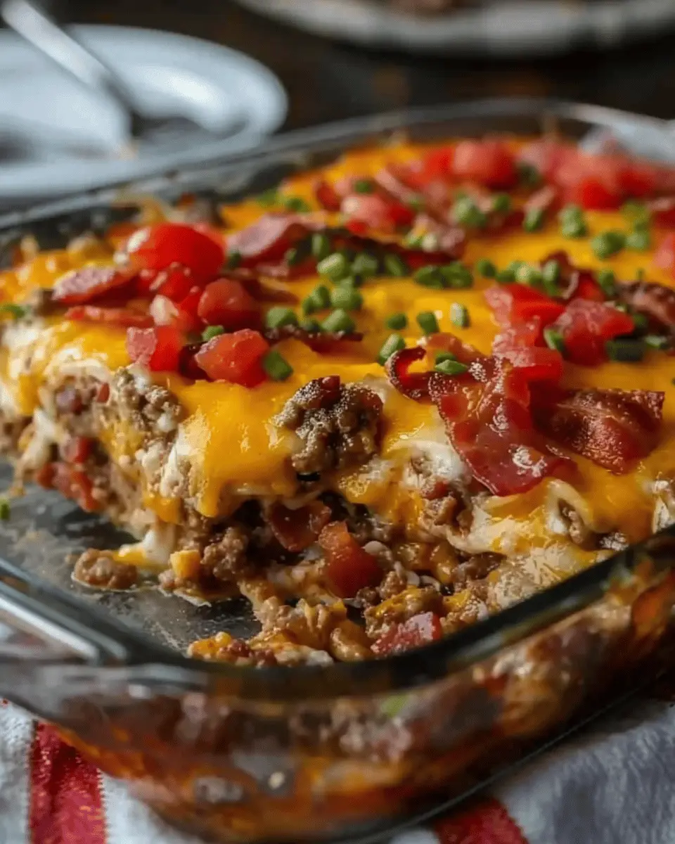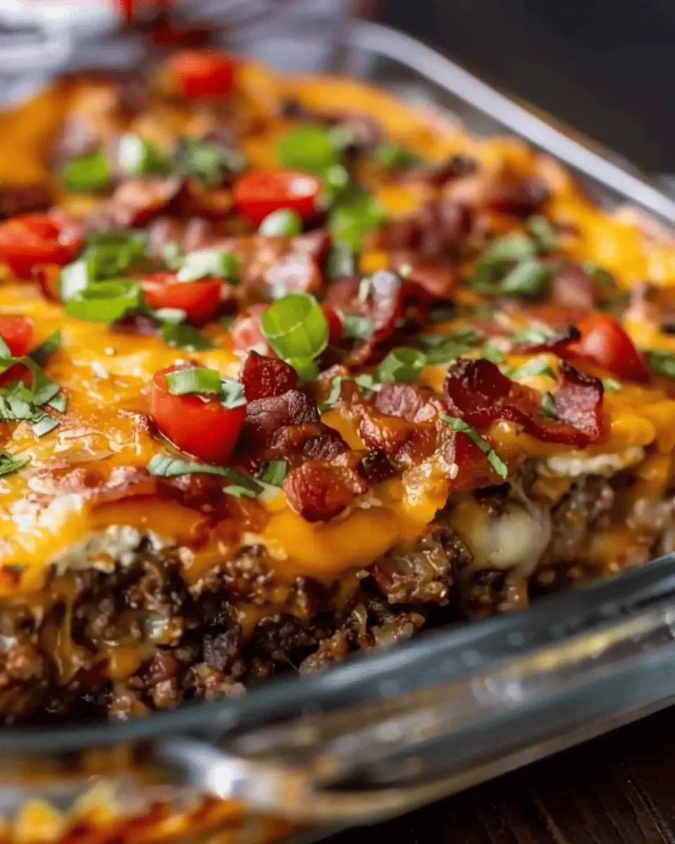 A delicious and easy recipe for a low-carb bacon cheeseburger casserole, perfect for quick meals.