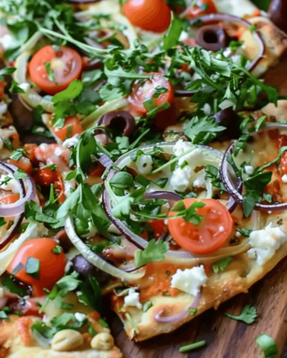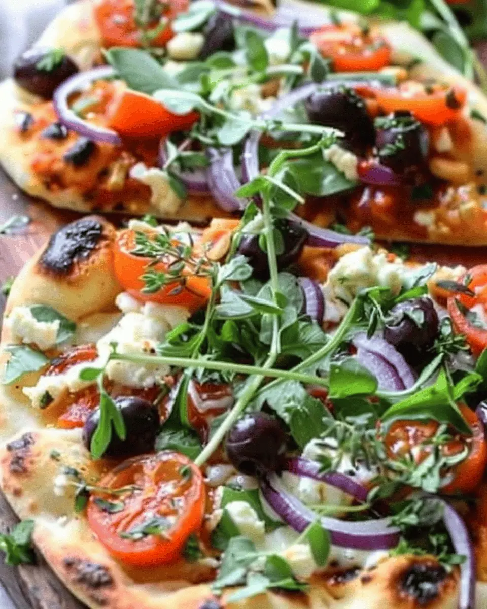 Not to mention, this dish is great for entertaining—who doesn’t love a customizable pizza night? Your friends will rave about it, and you’ll feel like a culinary star without spending hours in the kitchen. So, roll up your sleeves and have fun creating your Mediterranean masterpiece!