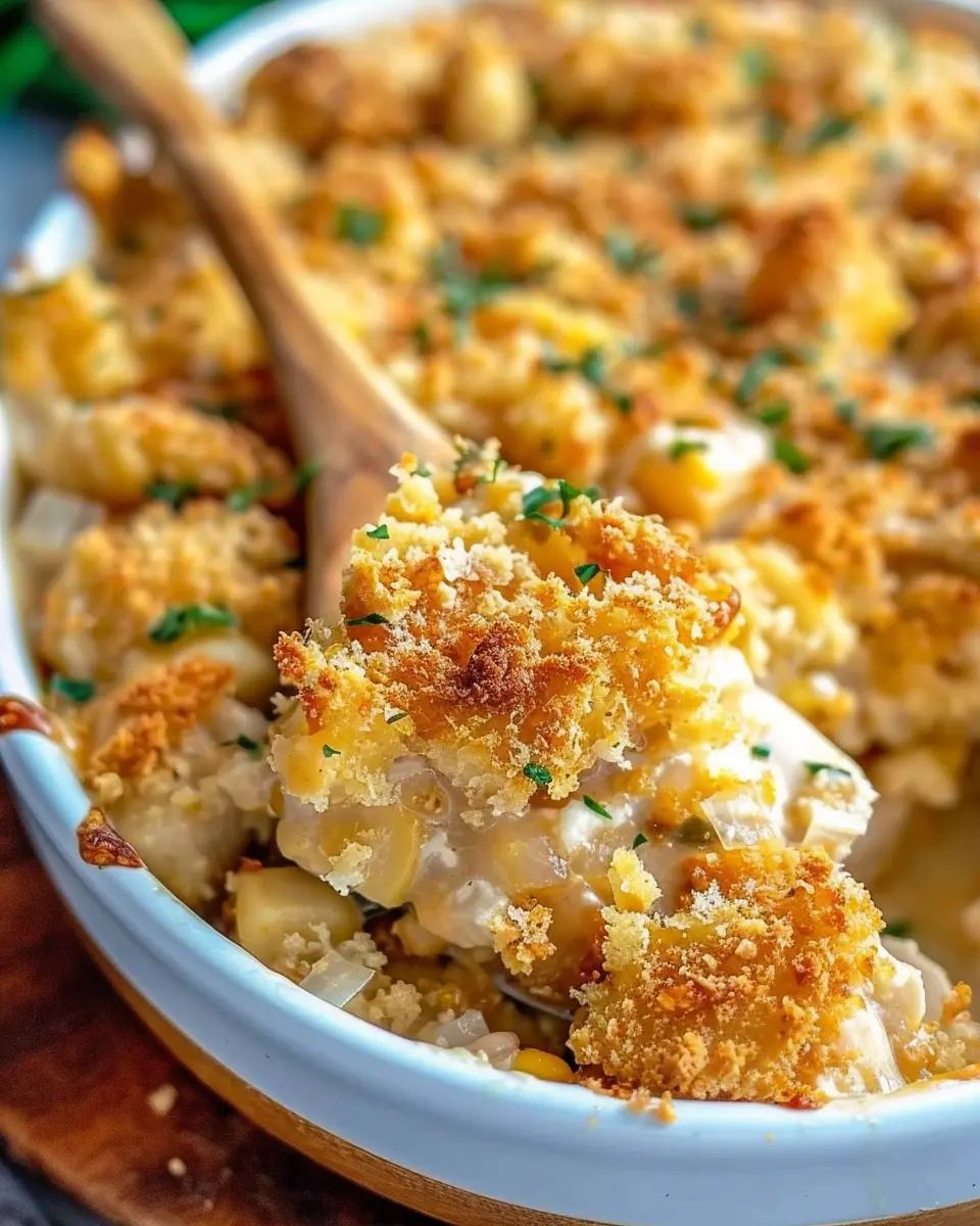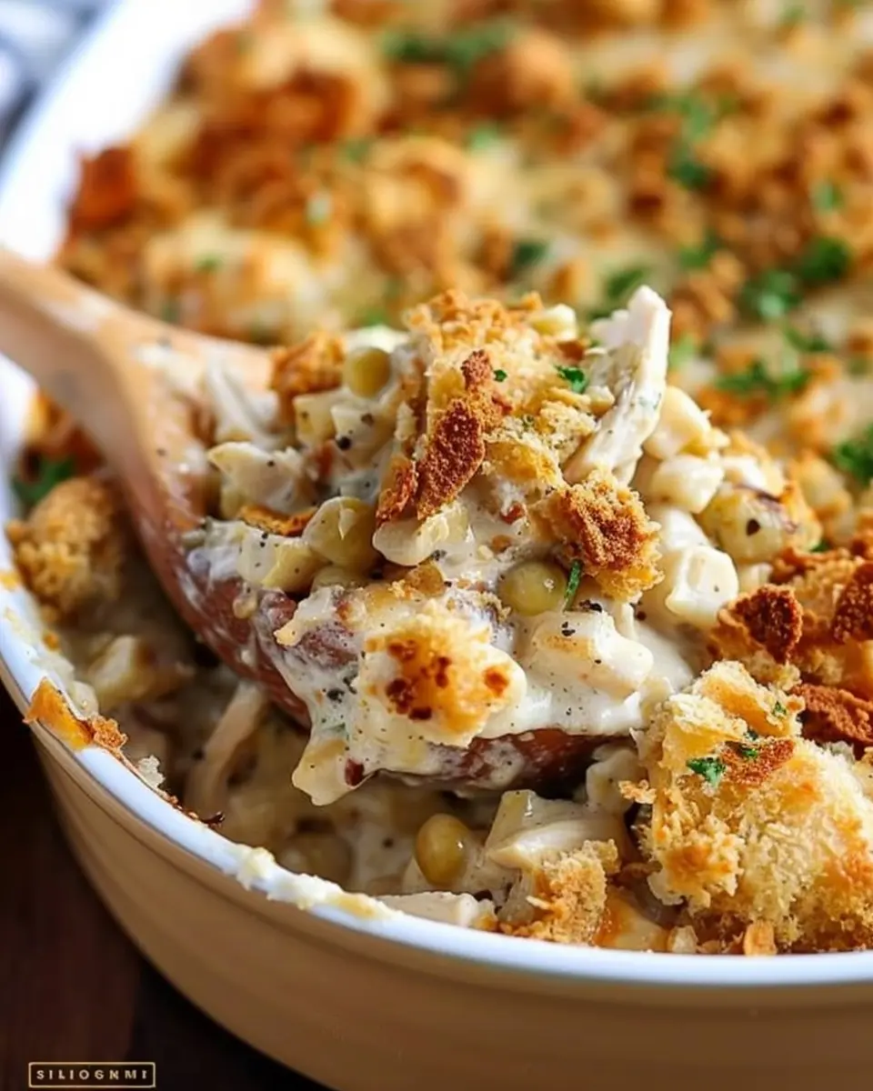 A creamy and delicious chicken casserole that is a comforting meal perfect for any occasion.