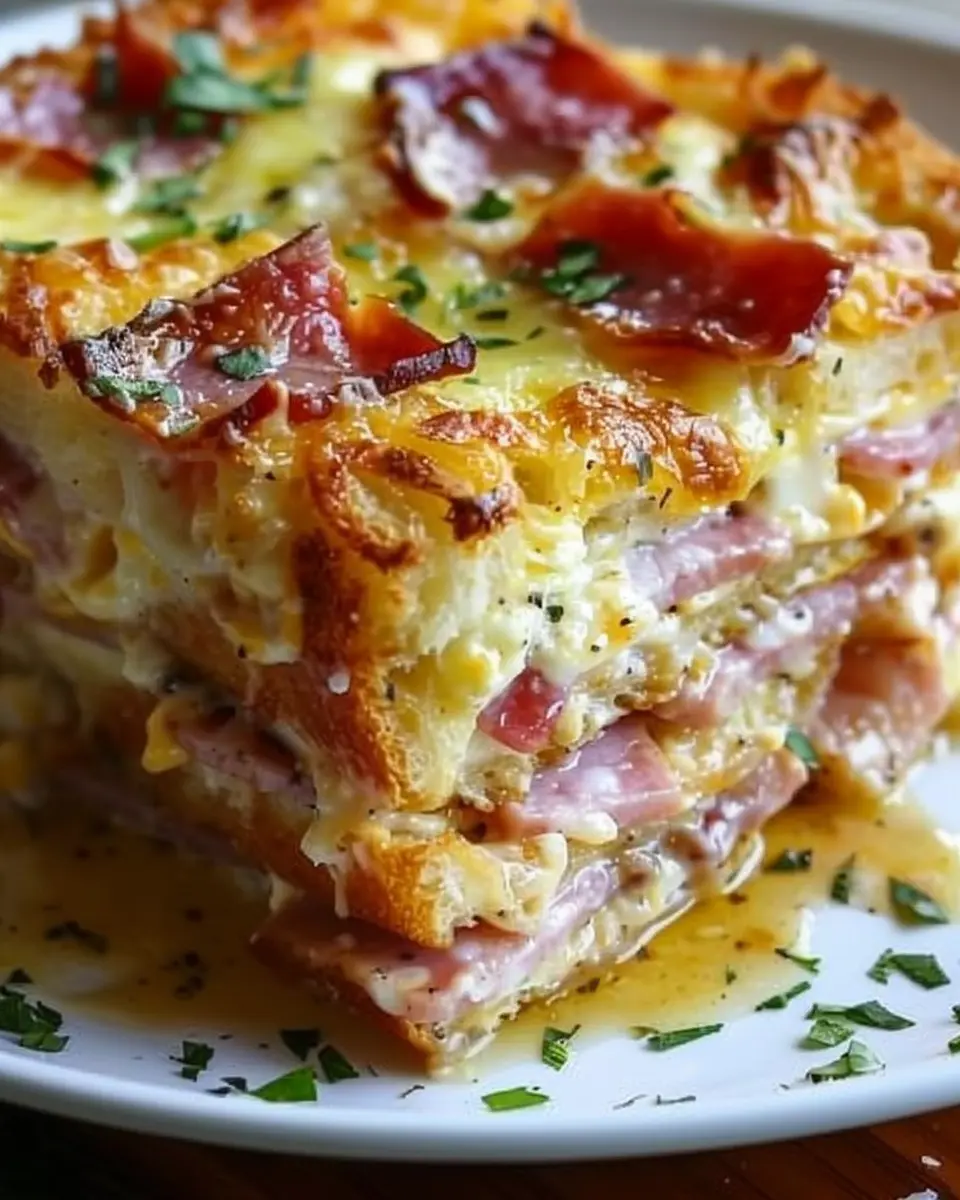 PrintMonte Cristo Breakfast Casserole: Easy and Delicious Turkey Bacon Twist
