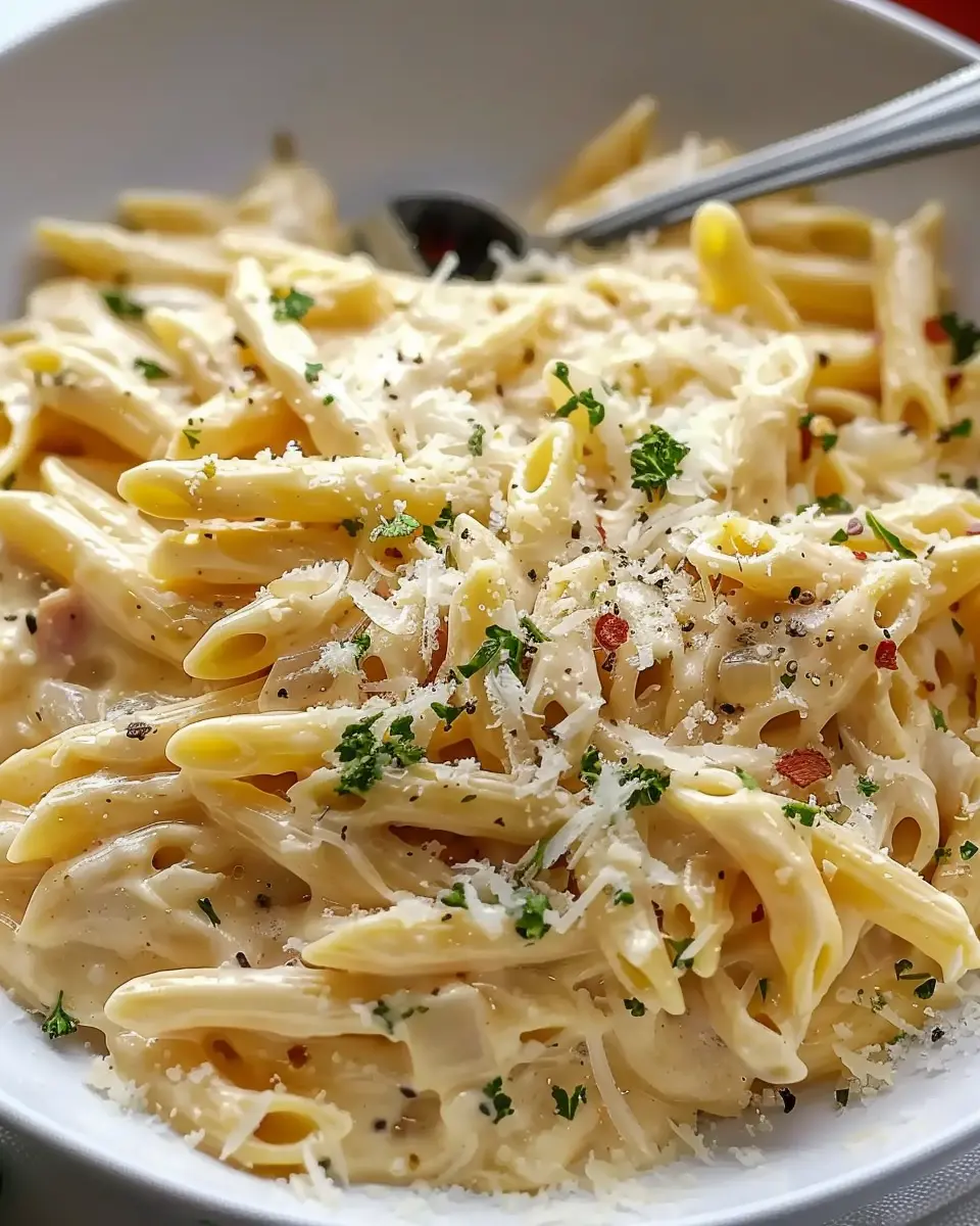 Creamy Garlic Pasta with Chicken Ham