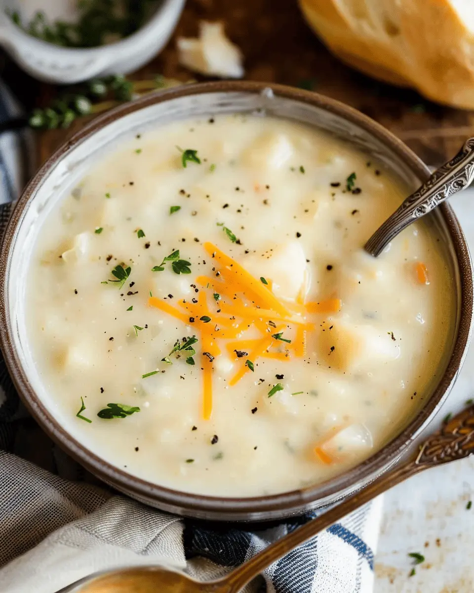 PrintPotato Soup Recipe: Creamy and Comforting with Turkey Bacon