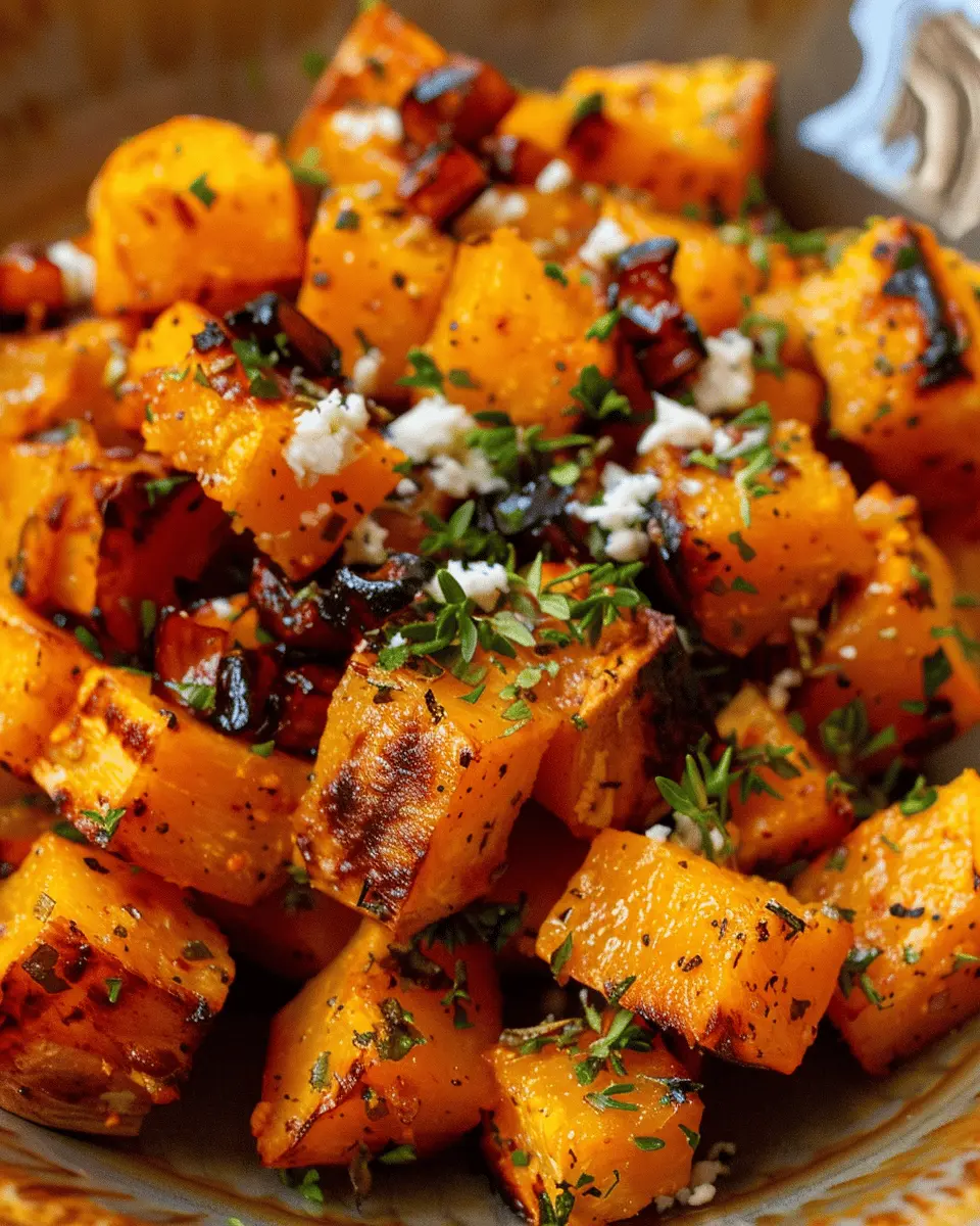 Now, this is where it gets even tastier! As your roasted butternut squash is cooling slightly, drizzle some honey over the top for added sweetness. Crumbled feta cheese sprinkled on just before serving adds a creamy, salty contrast that makes this dish truly irresistible. If you’ve chosen to use fresh thyme, feel free to toss some more on for a burst of herbaceous flavor.
