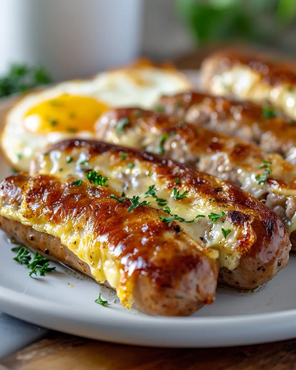 A delicious combination of sausage and eggs, perfect for breakfast.
